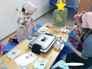 ホットプレートで自分のチョコを溶かしてもらいます。みんな真剣です!