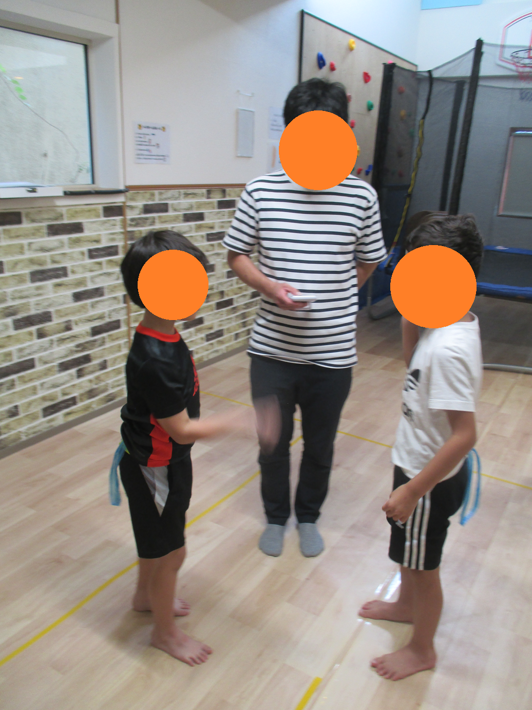 まずはじゃんけんをして、勝った人は負けた人のしっぽを追いかけます!負けた人はすぐに逃げて、しっぽを取られないように全力で走ります🏃💨じゃんけんの勝ち負けをパッと判断して、すぐに体を動かすのがポイント。