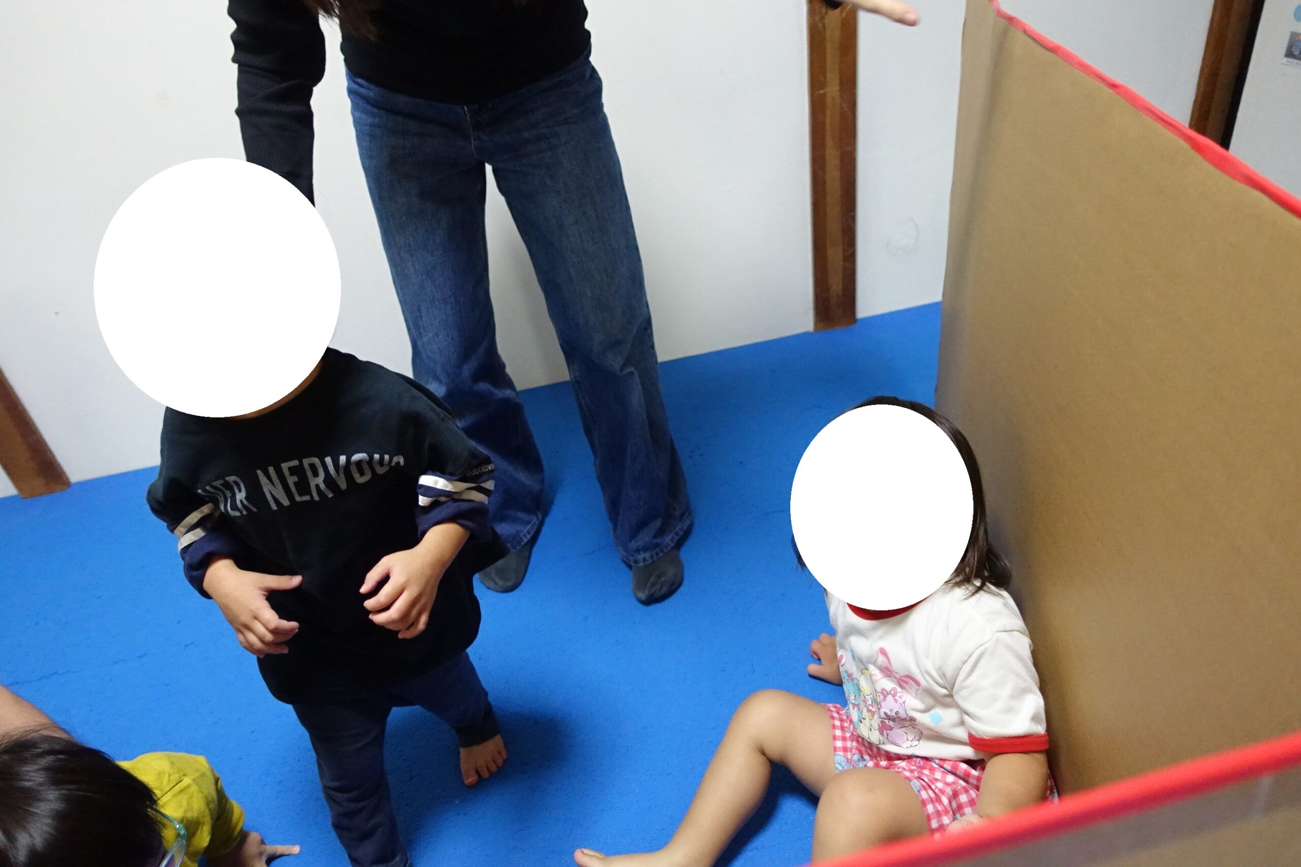 先生がおおかみさん役🐺、子どもたちはこぶた役🐷になってスタート!