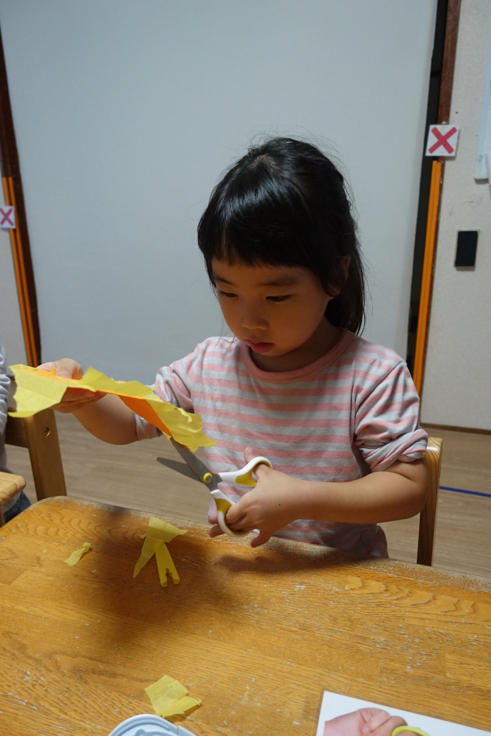 指先を上手に使って細かくちぎり、感触を楽しみながら集中して取り組む姿が見られました。