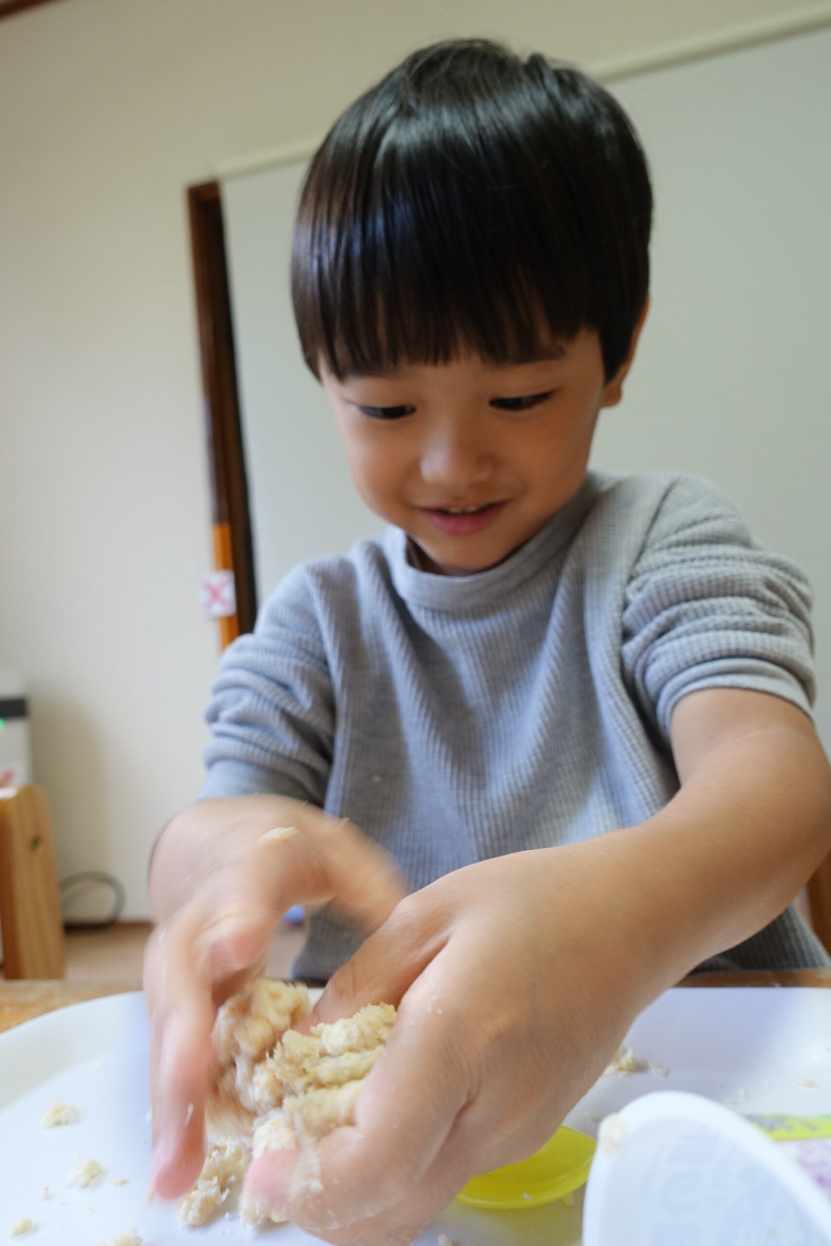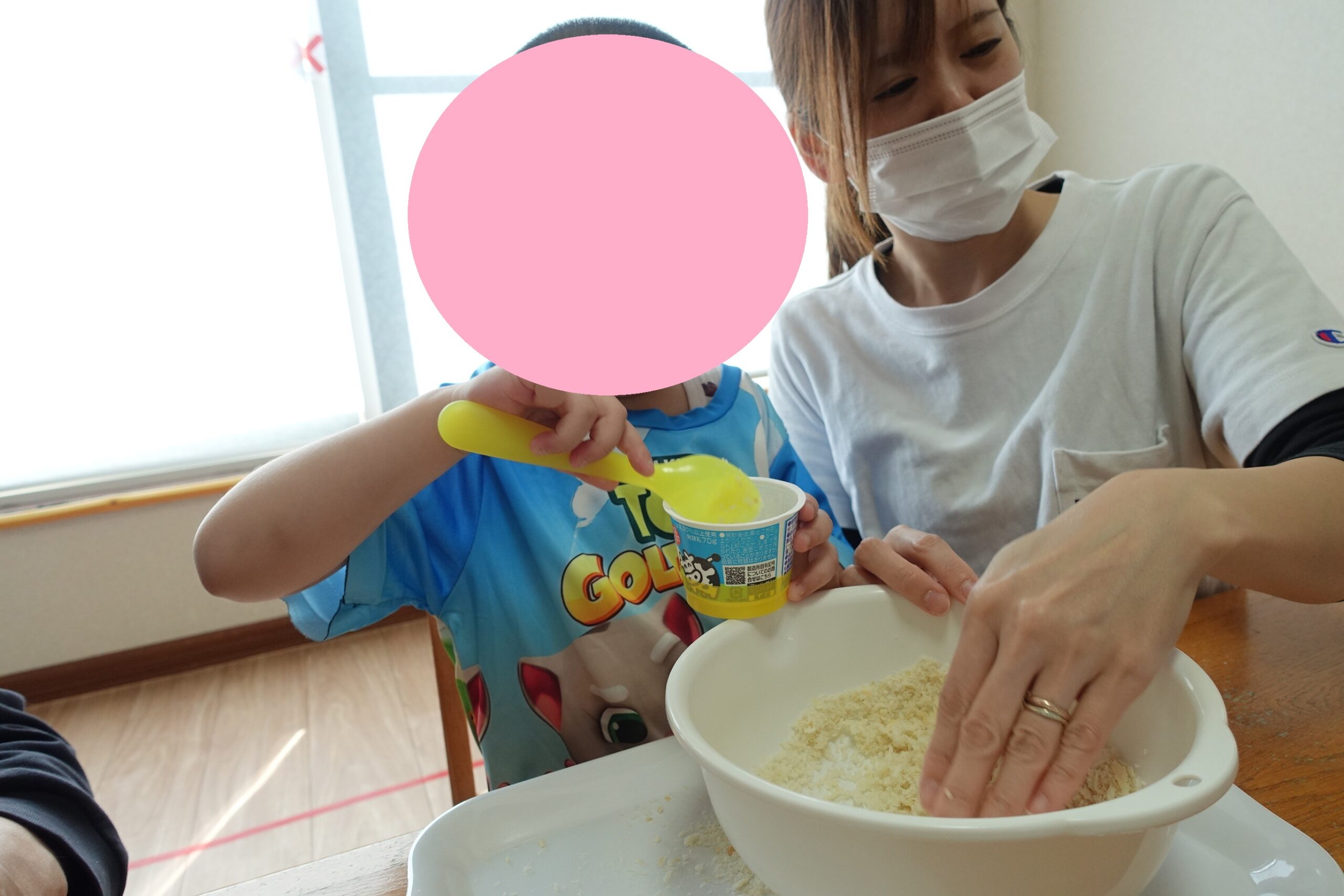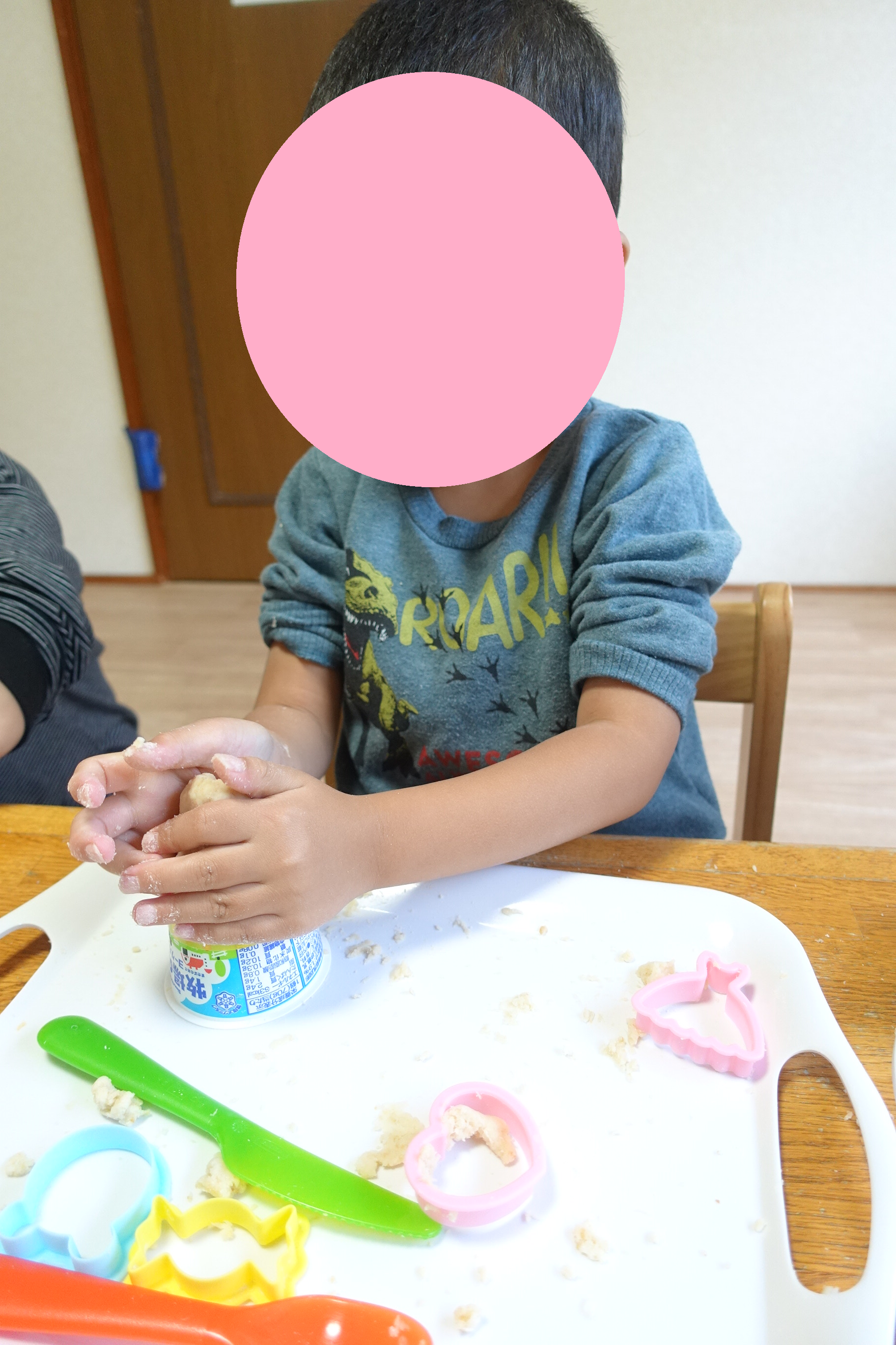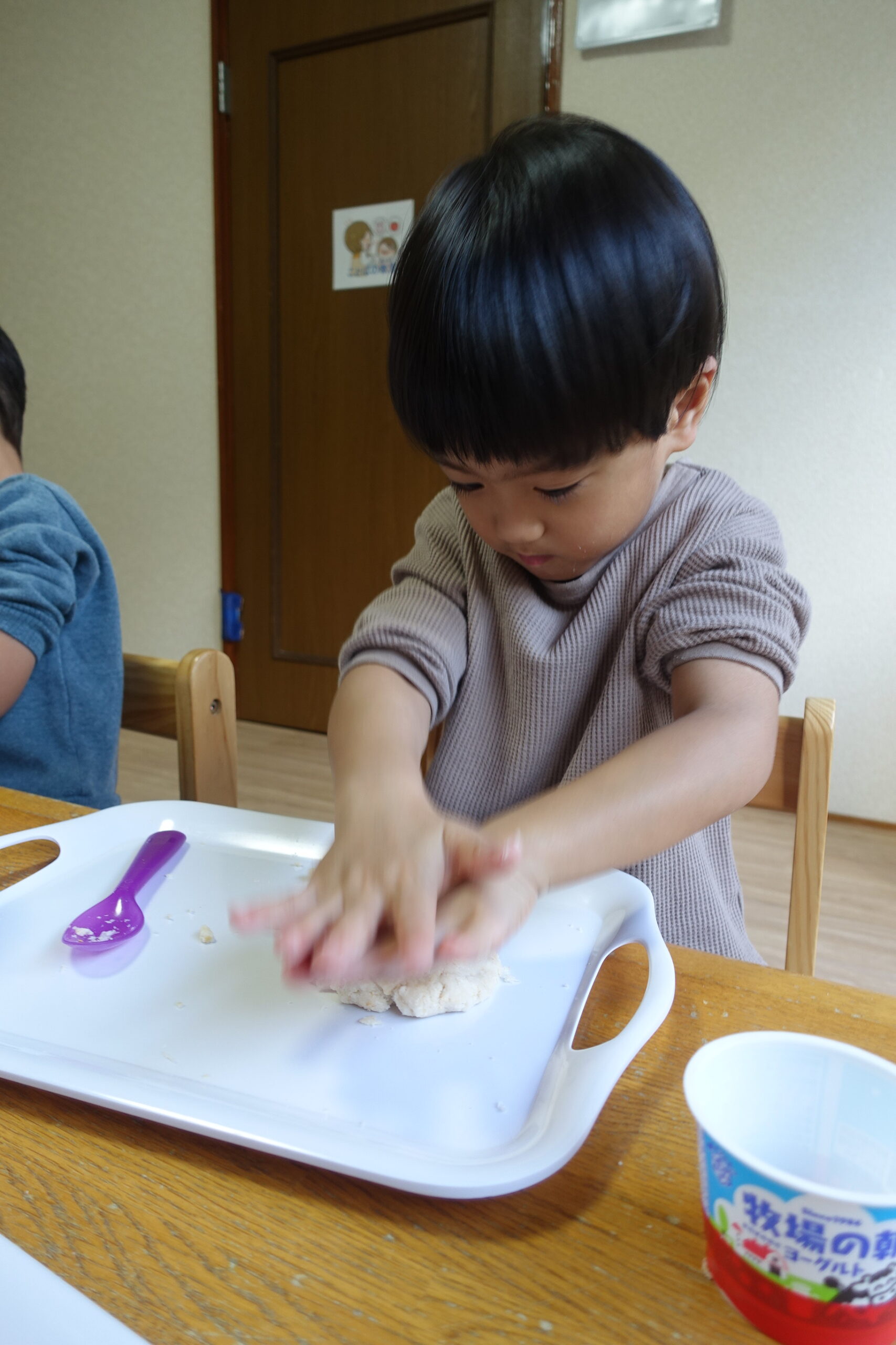 はじめは「これなあに?」「なんかパンのにおいがする〜!」と、少し不思議そうな表情の子どもたち。