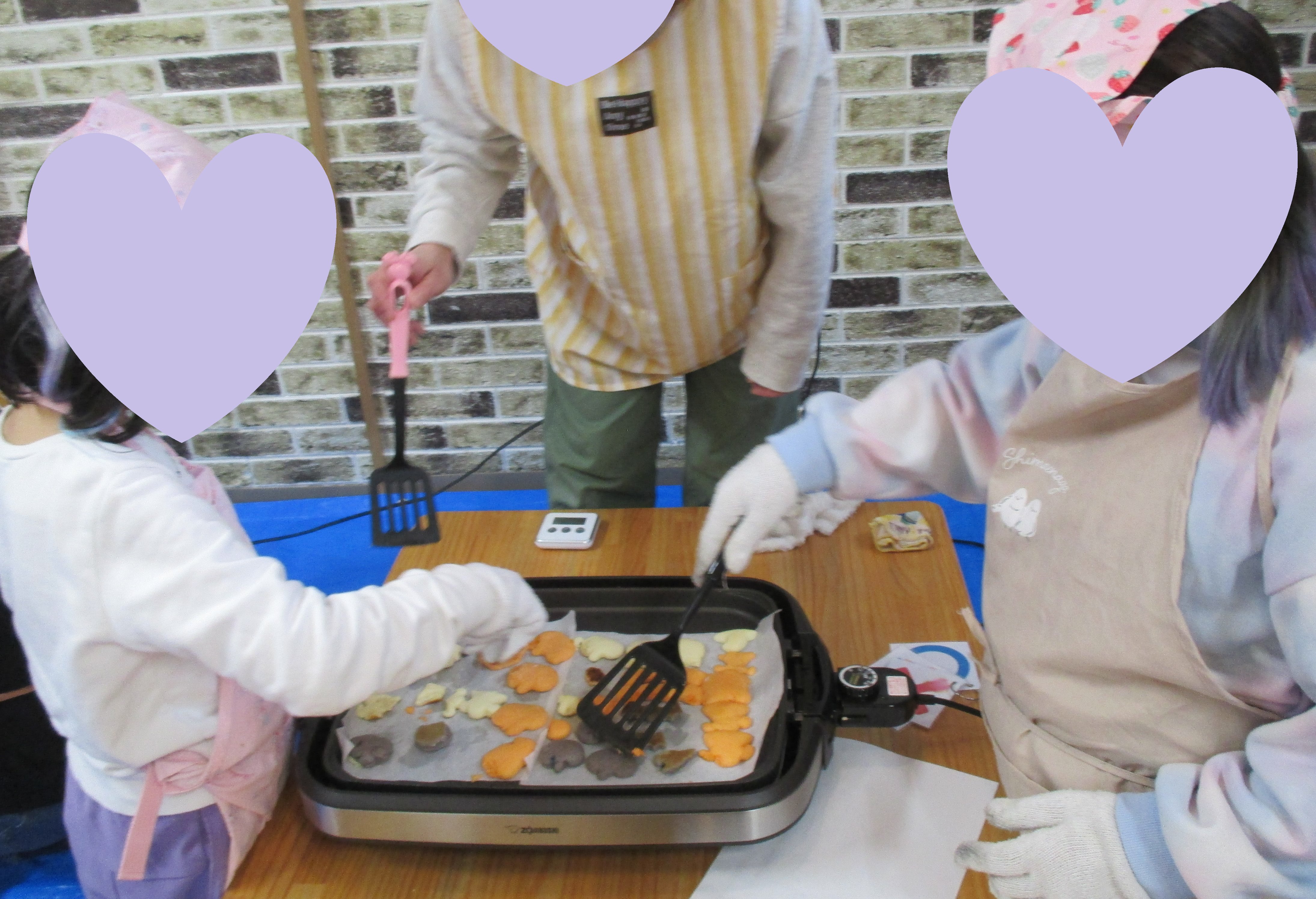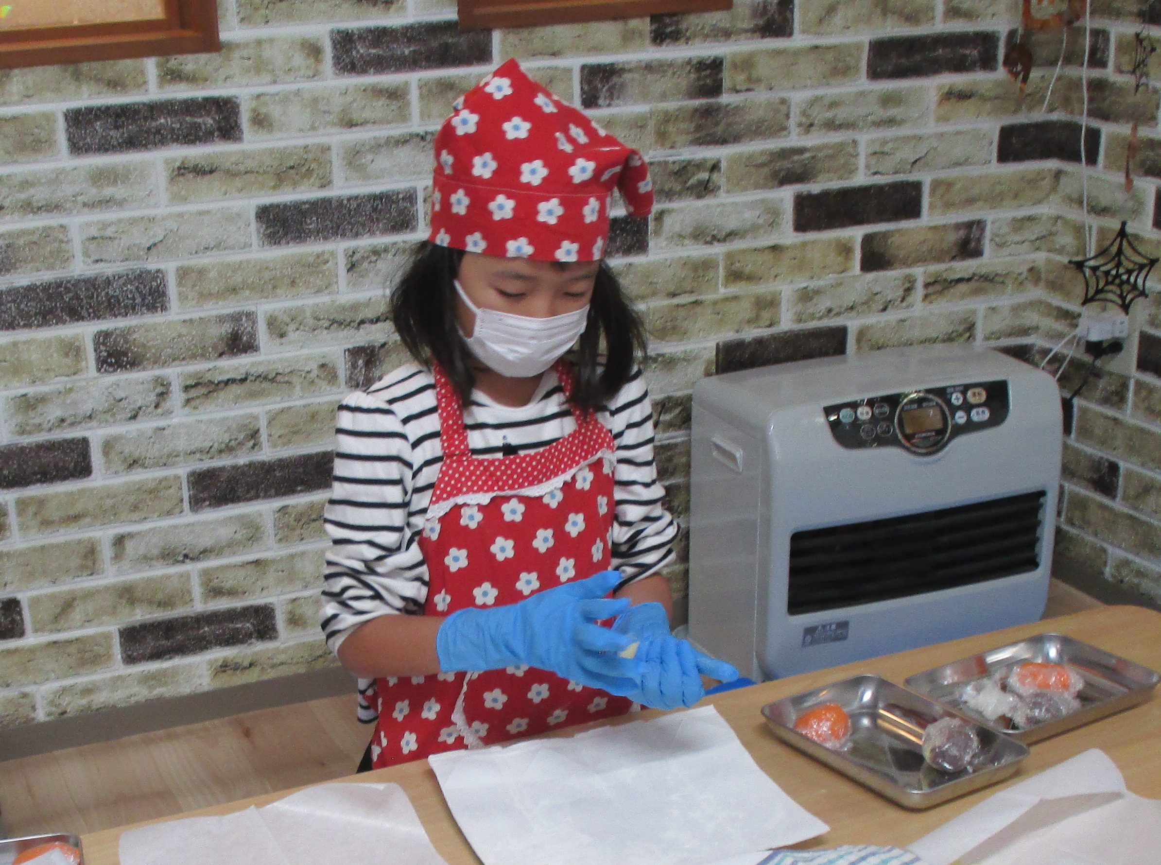 🍪クッキーづくりでは、かぼちゃ・コウモリ・おばけ・魔女の帽子などの型で、