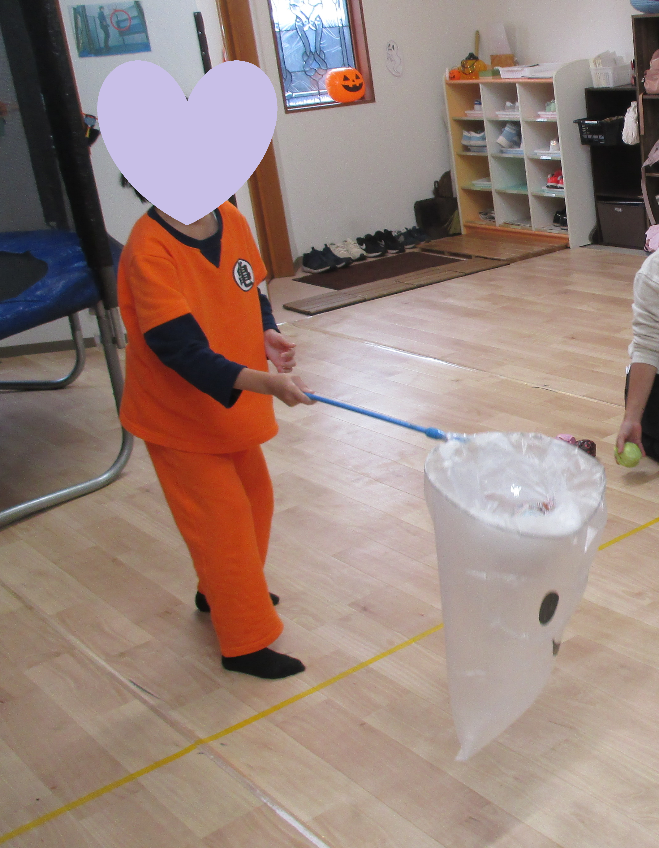 おばけの網でお菓子入りキャンディーをキャッチしたり、