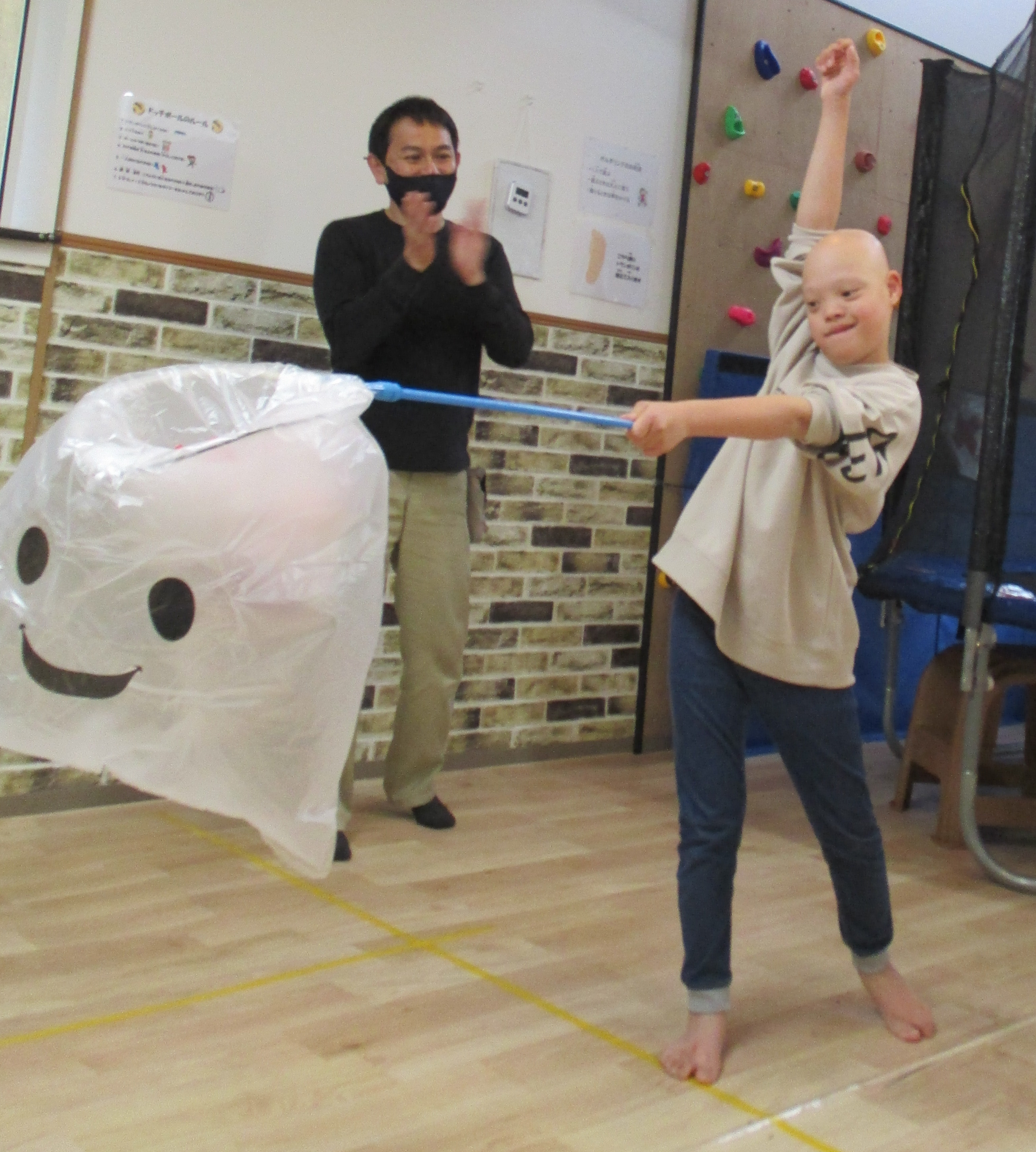 お化けタワーをカラーボールで倒したりと大盛り上がり!