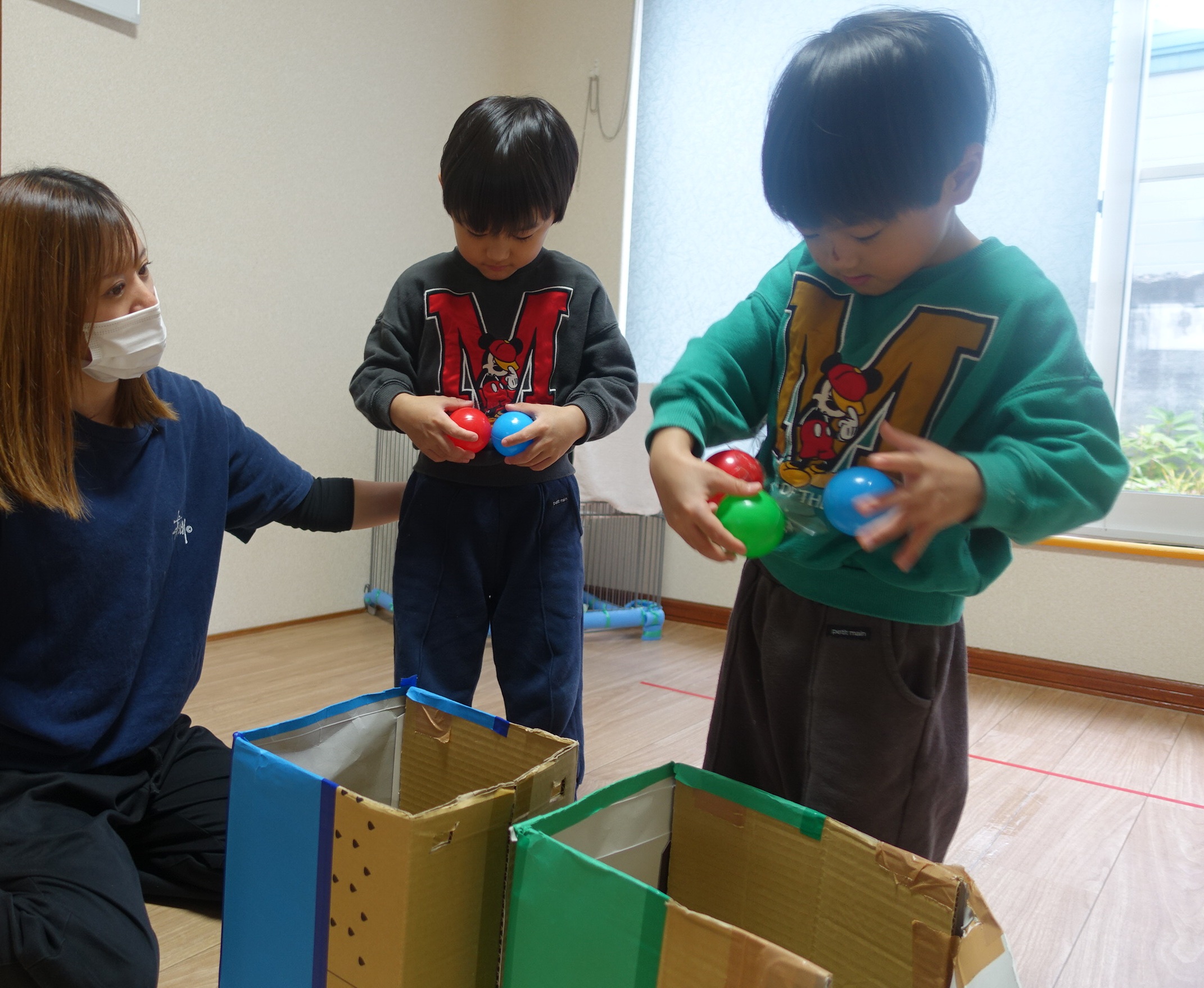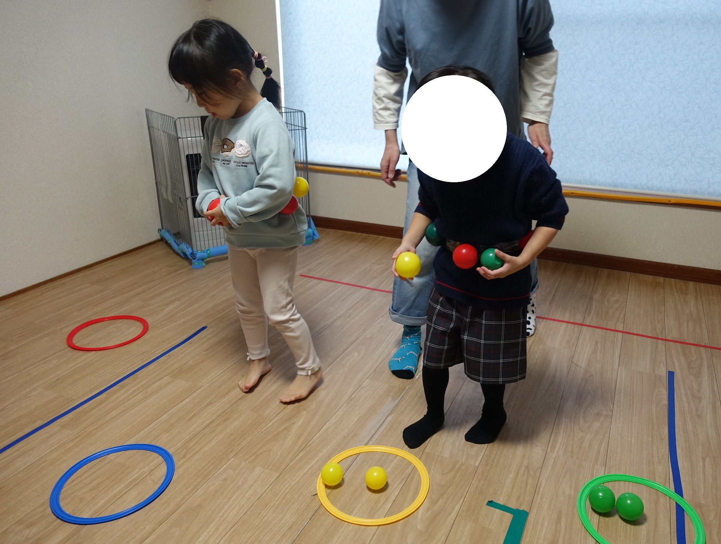 ここあーる:運動遊び「体からボールを探せ🔵🔴」