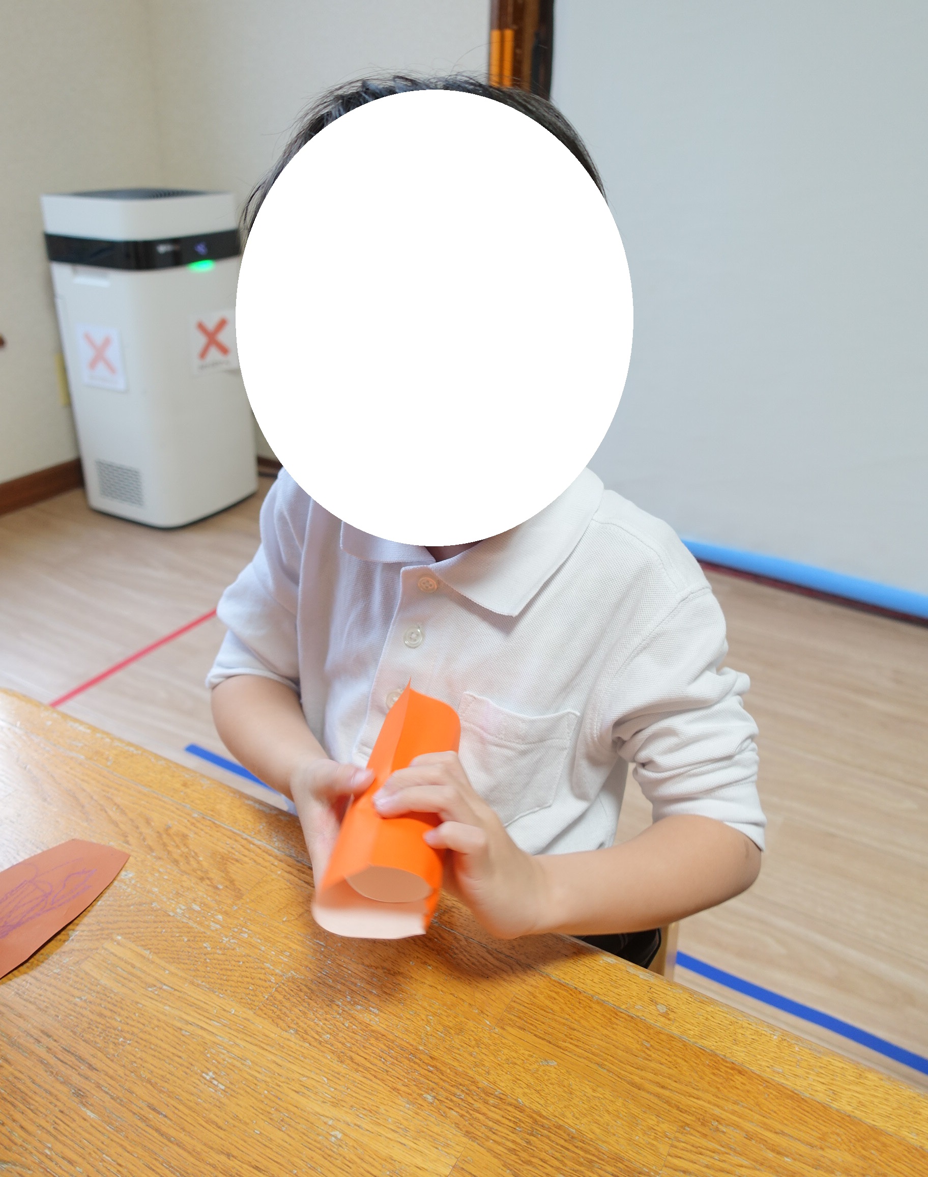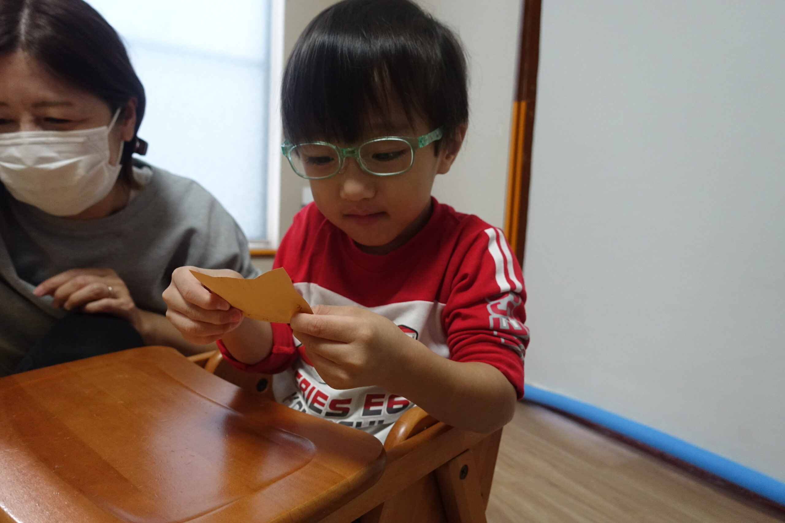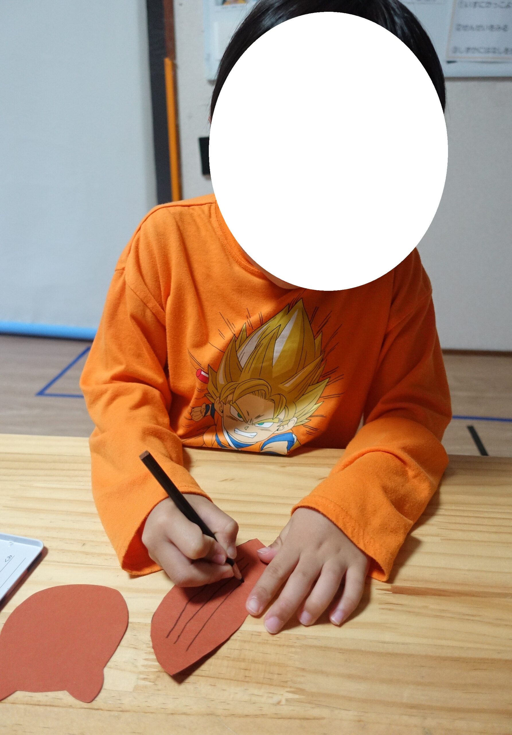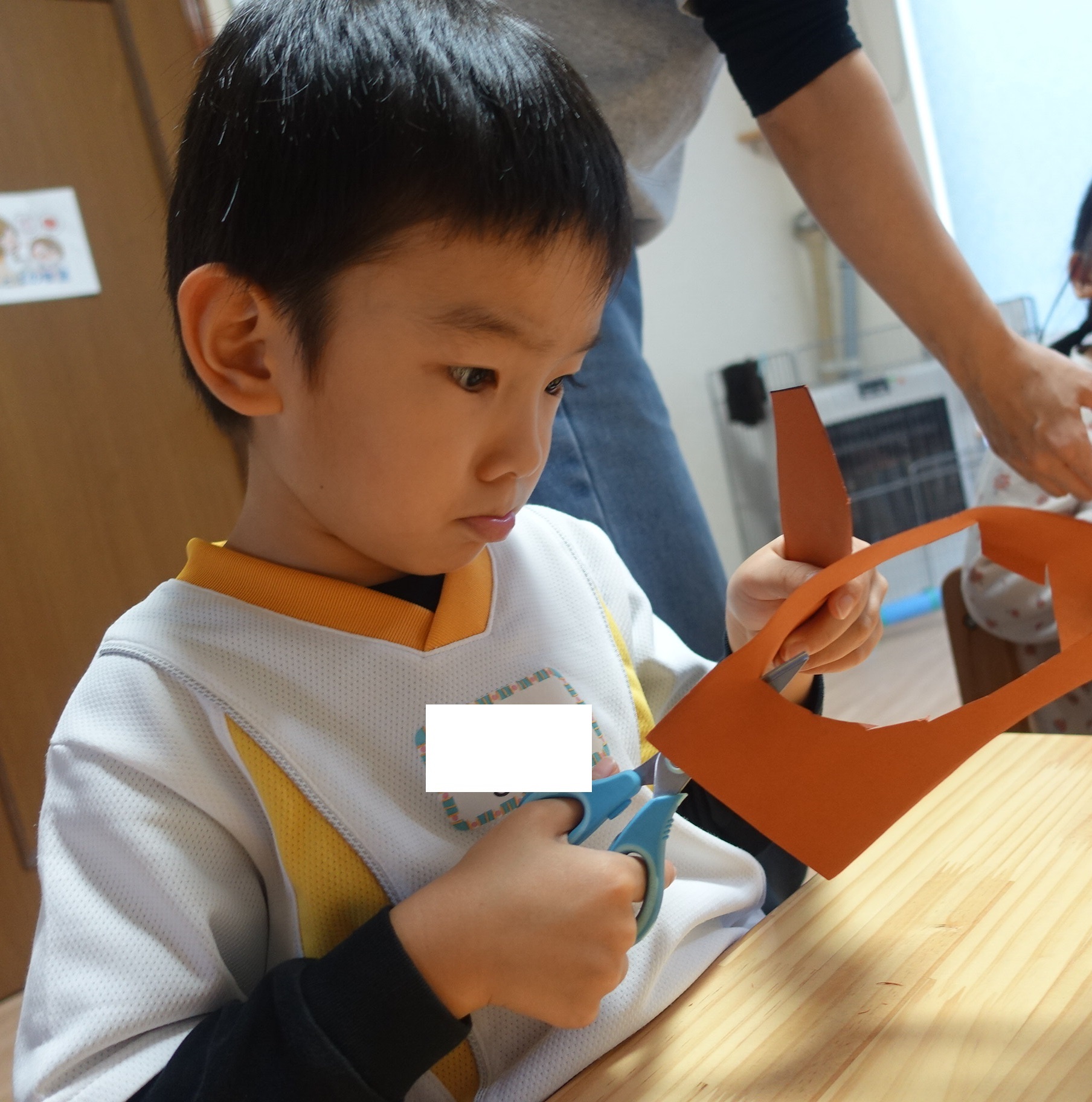 らいおんクラスさんは、まずお顔の形をハサミでチョキチョキ✂️