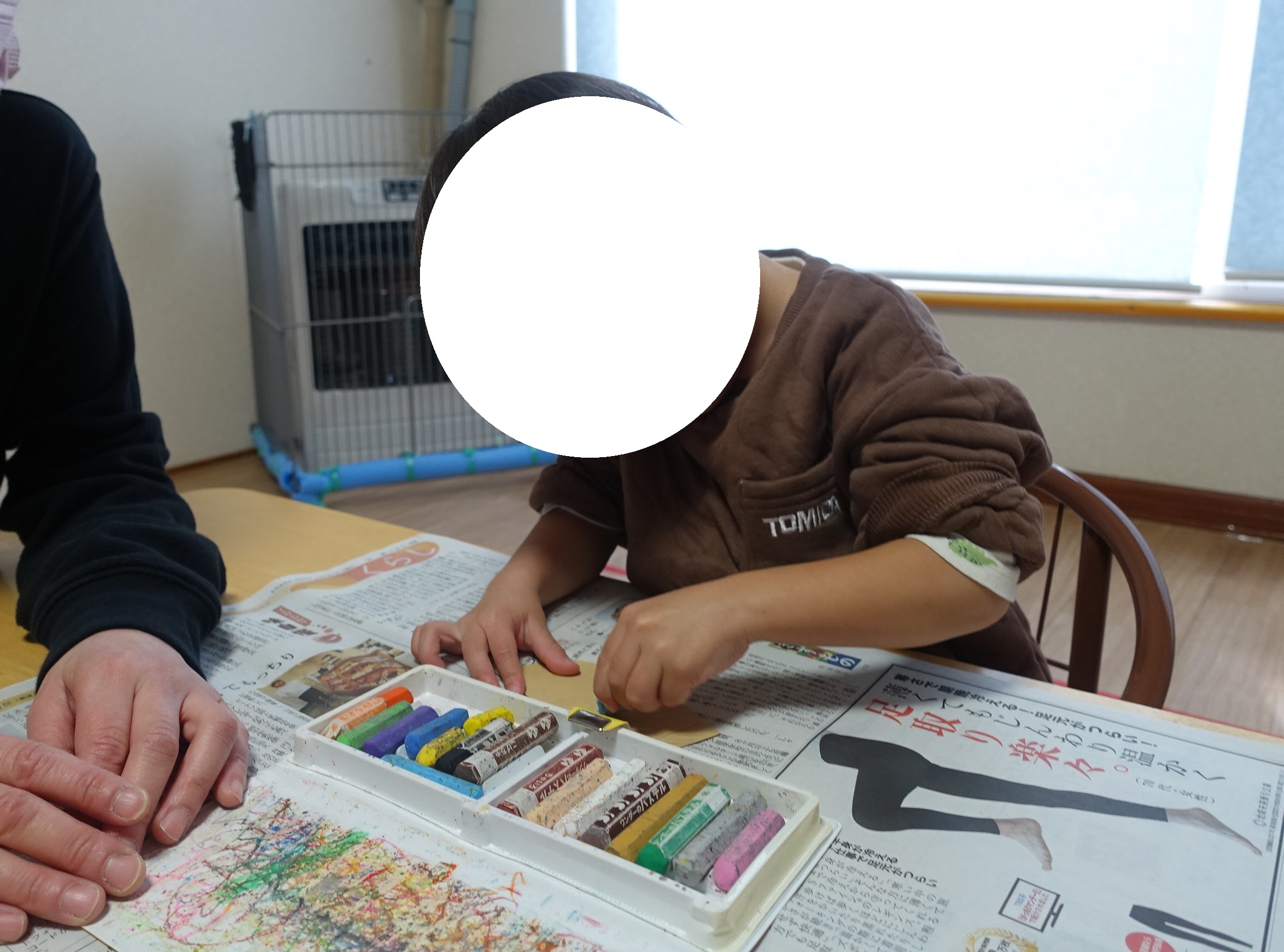クレヨンでニコニコのお口を描いて、かわいい表情がたくさんできました💕