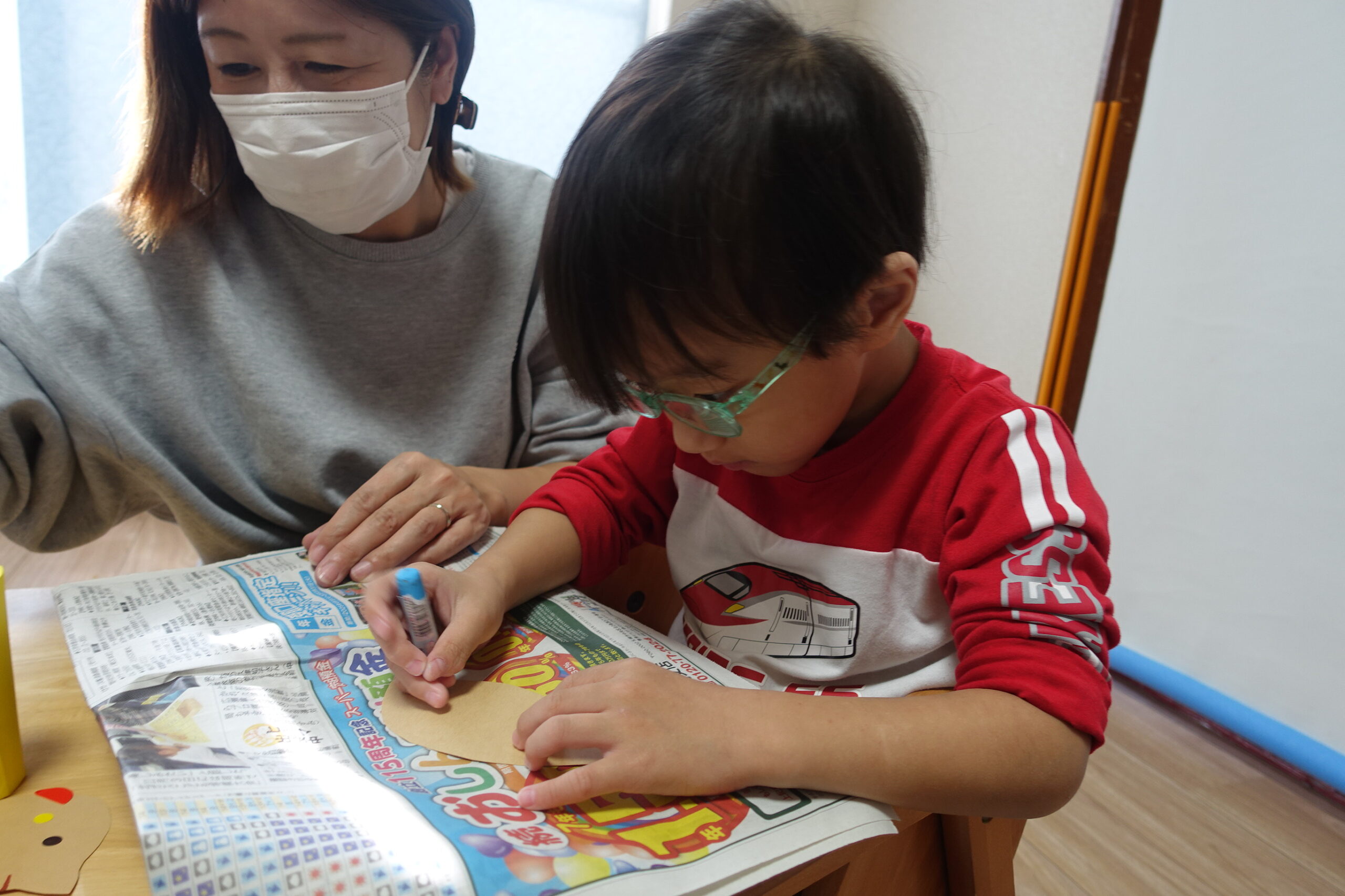 「おめめはここ!」「ほっぺもつけよう!」と、みんな楽しそうにシールを貼っていました😊
