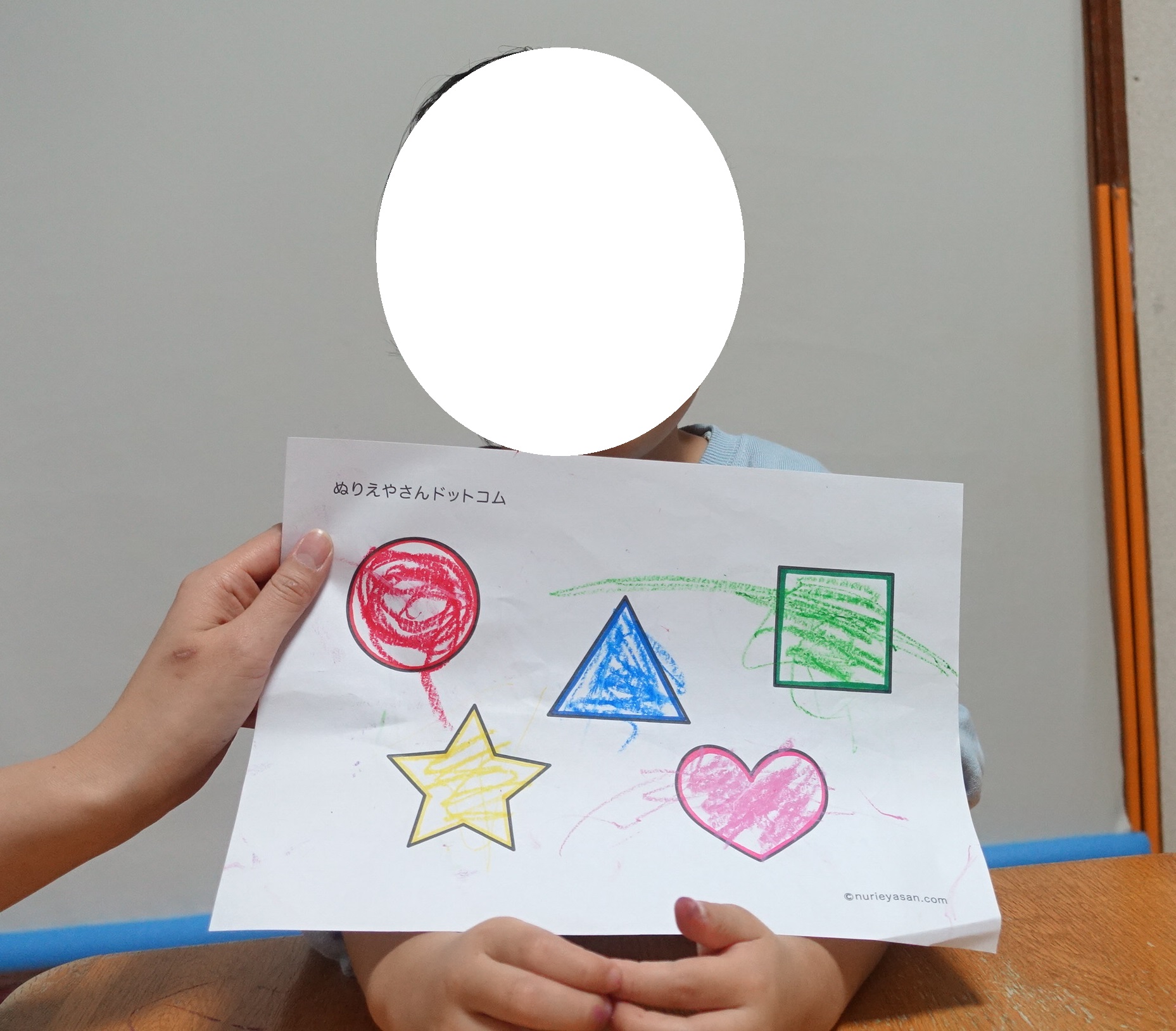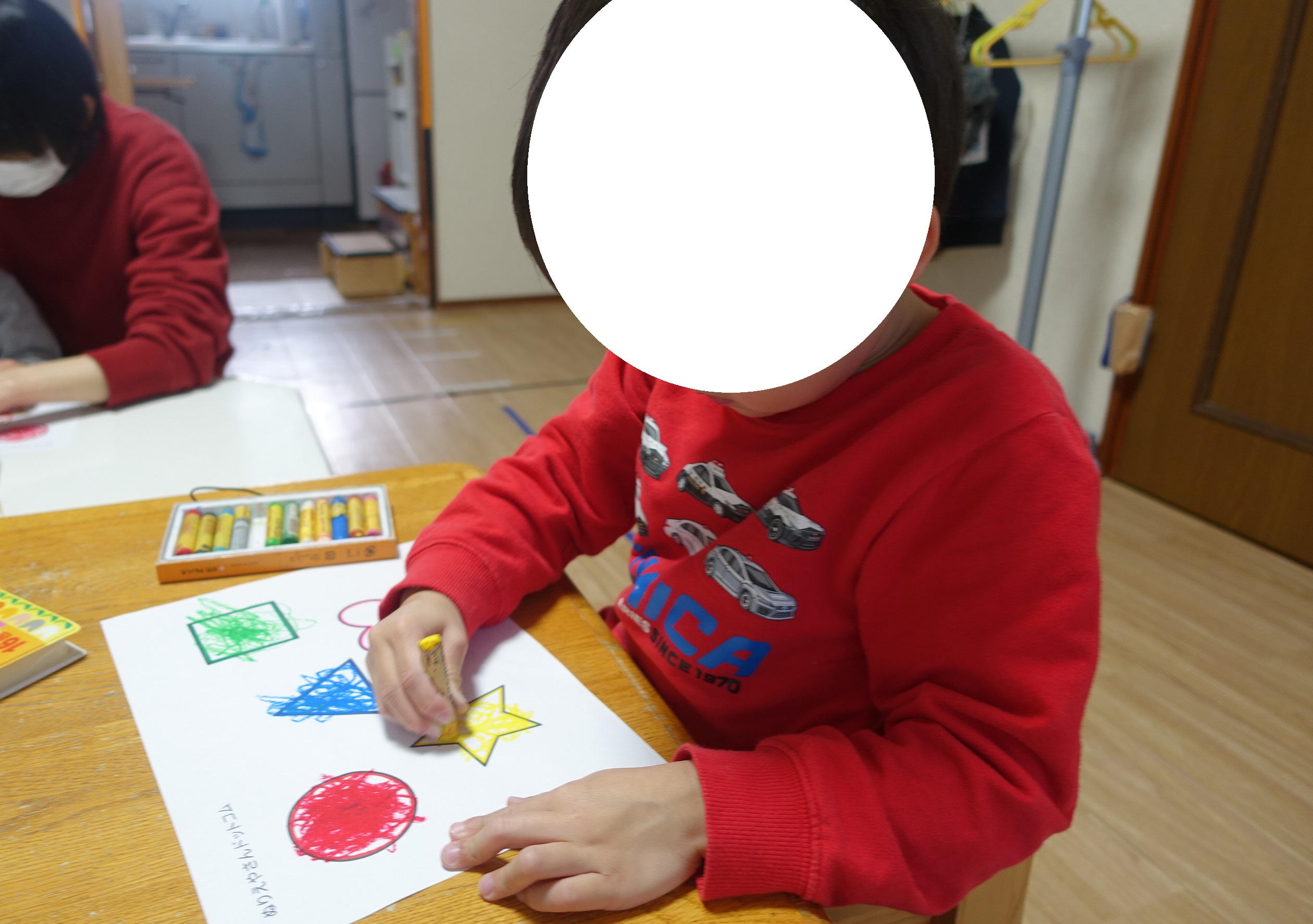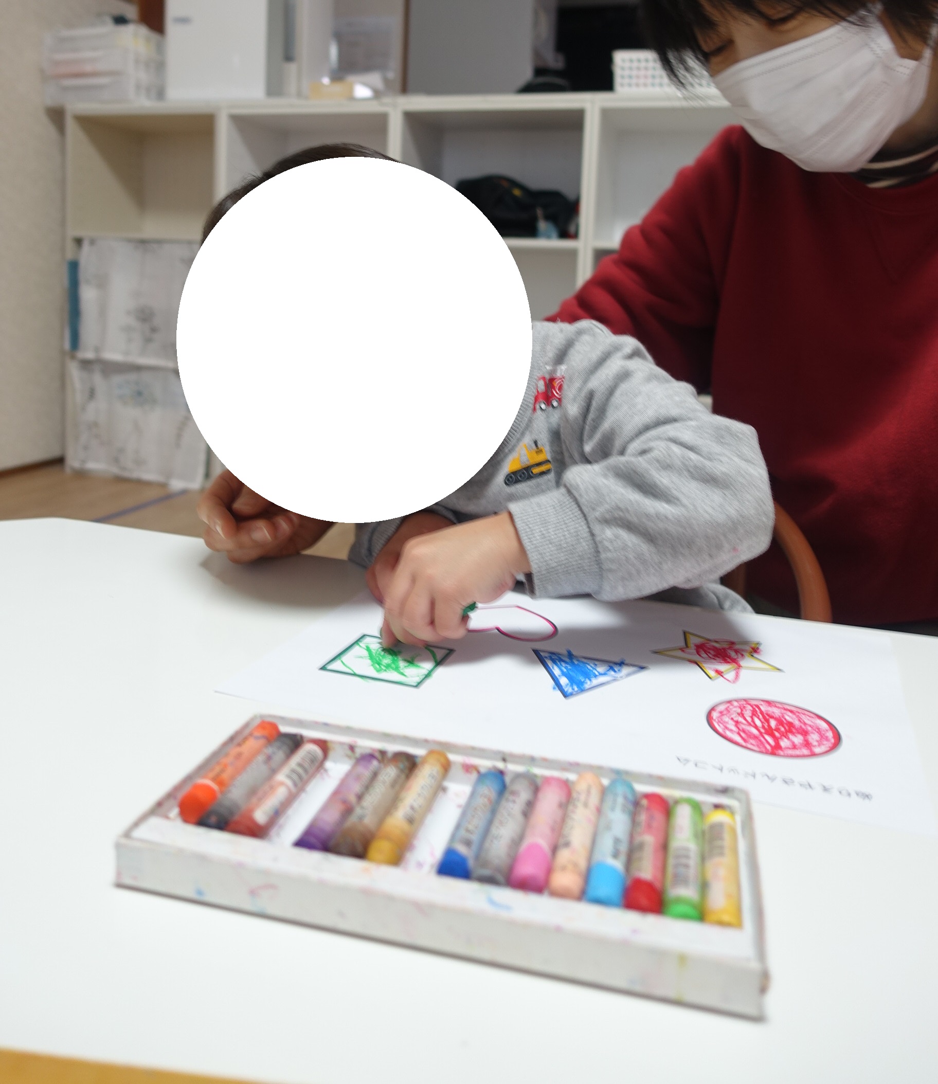 その“同じ色”を選んで枠の中を塗る、という活動に挑戦しました🖍️🌈