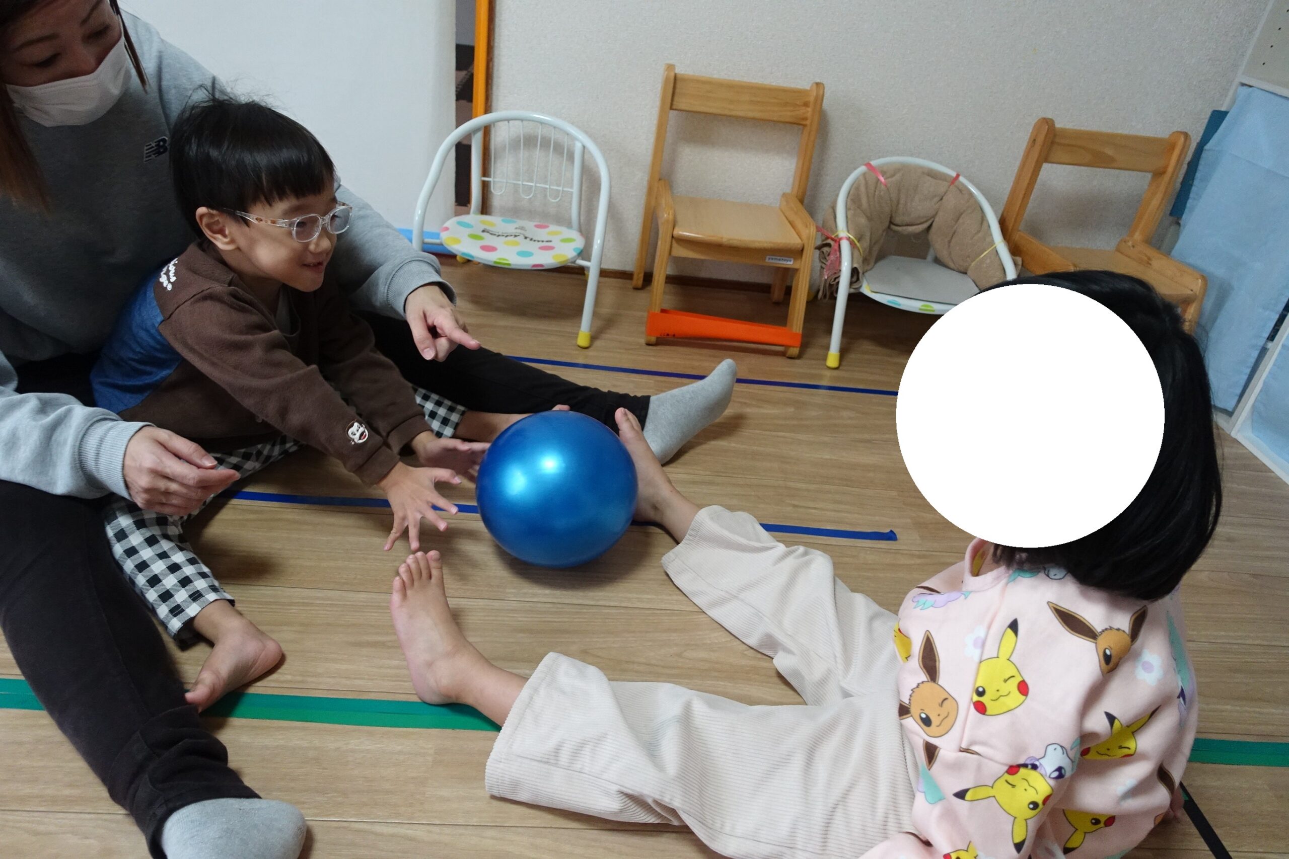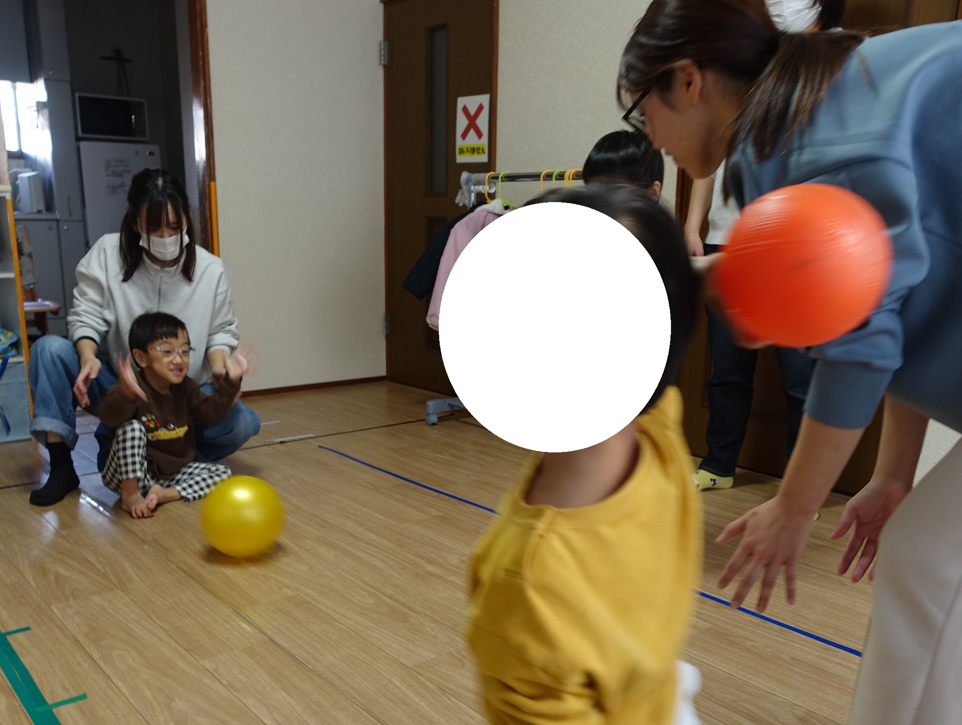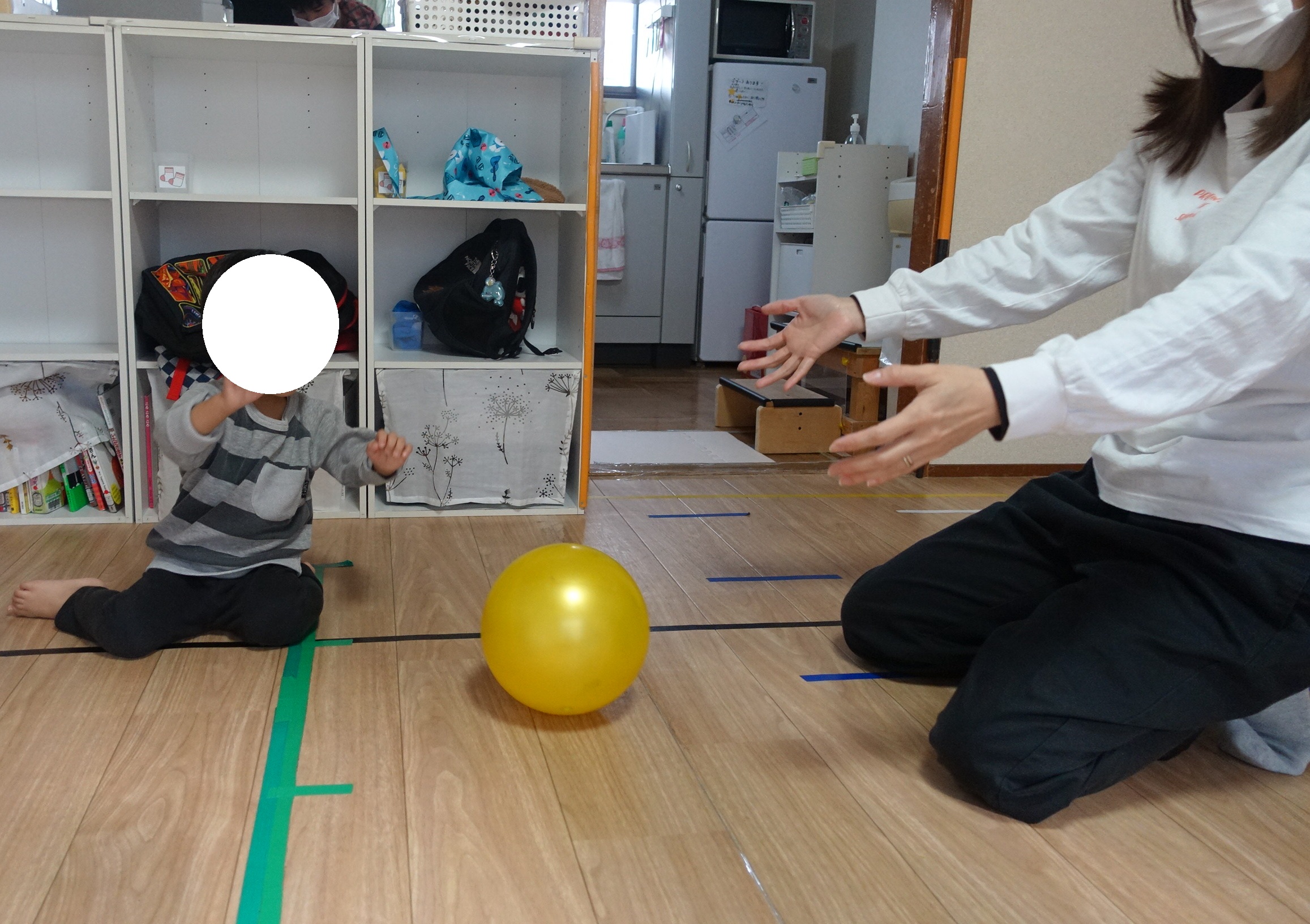 今回のボール遊びでは、お友だちや先生と向かい合って、