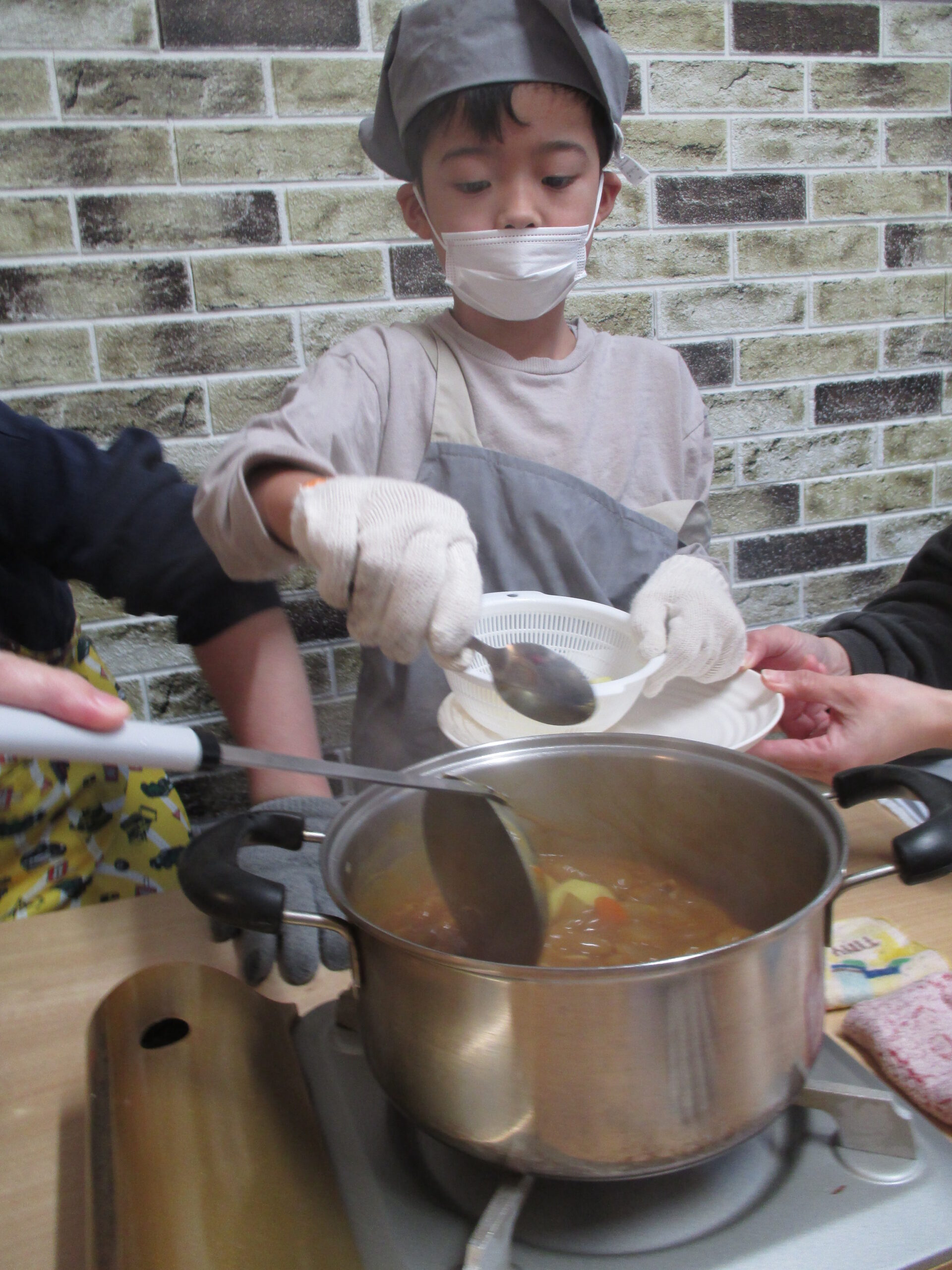 完成したカレーを前に「いただきまーす!」と元気な声が響き、おかわりをするお友だちもたくさんいました🍛💕