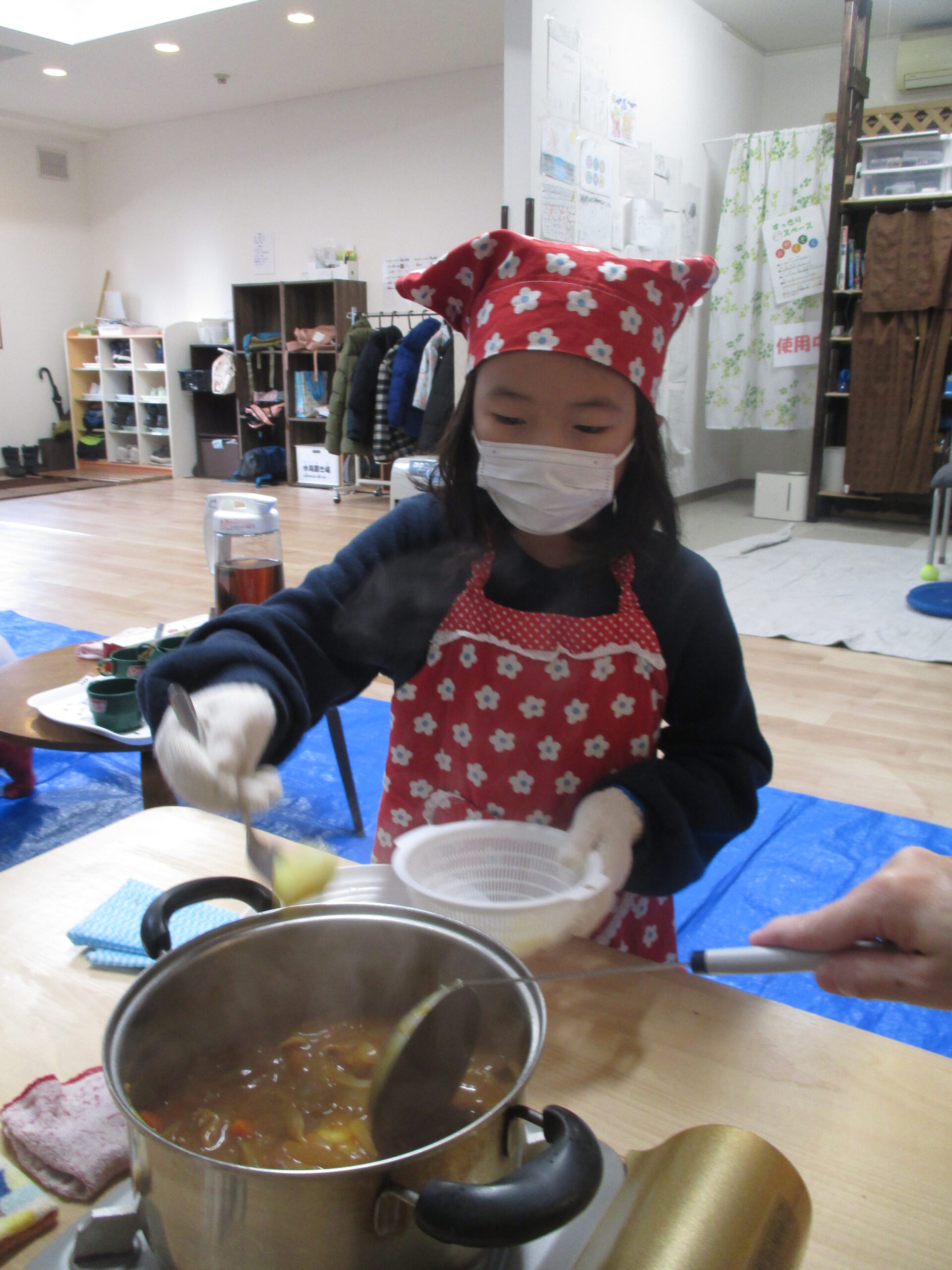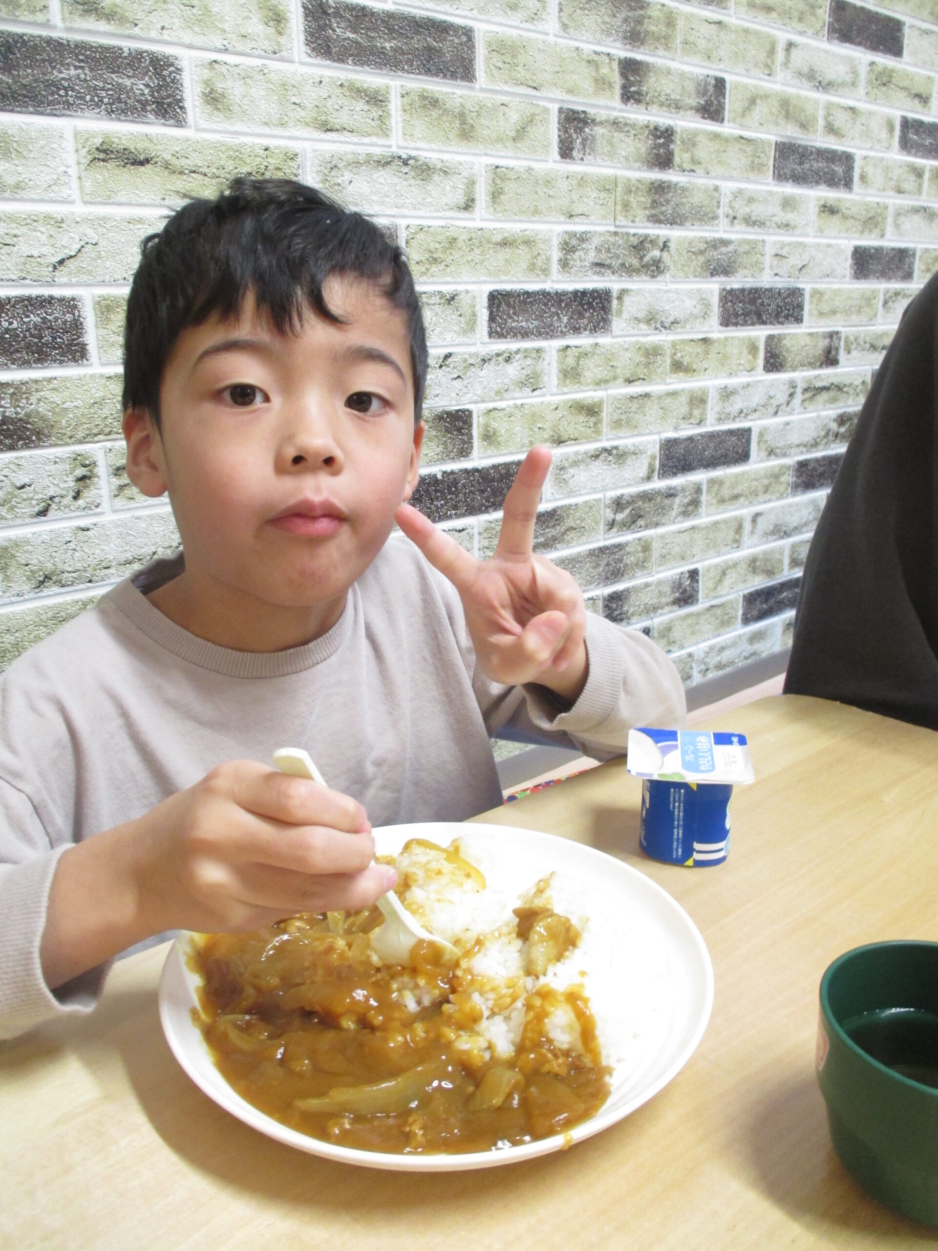煮込み時間には『カレーライスクイズ』をしました🙋♀️ 手をあげて答えてくれ、楽しんでいました✨