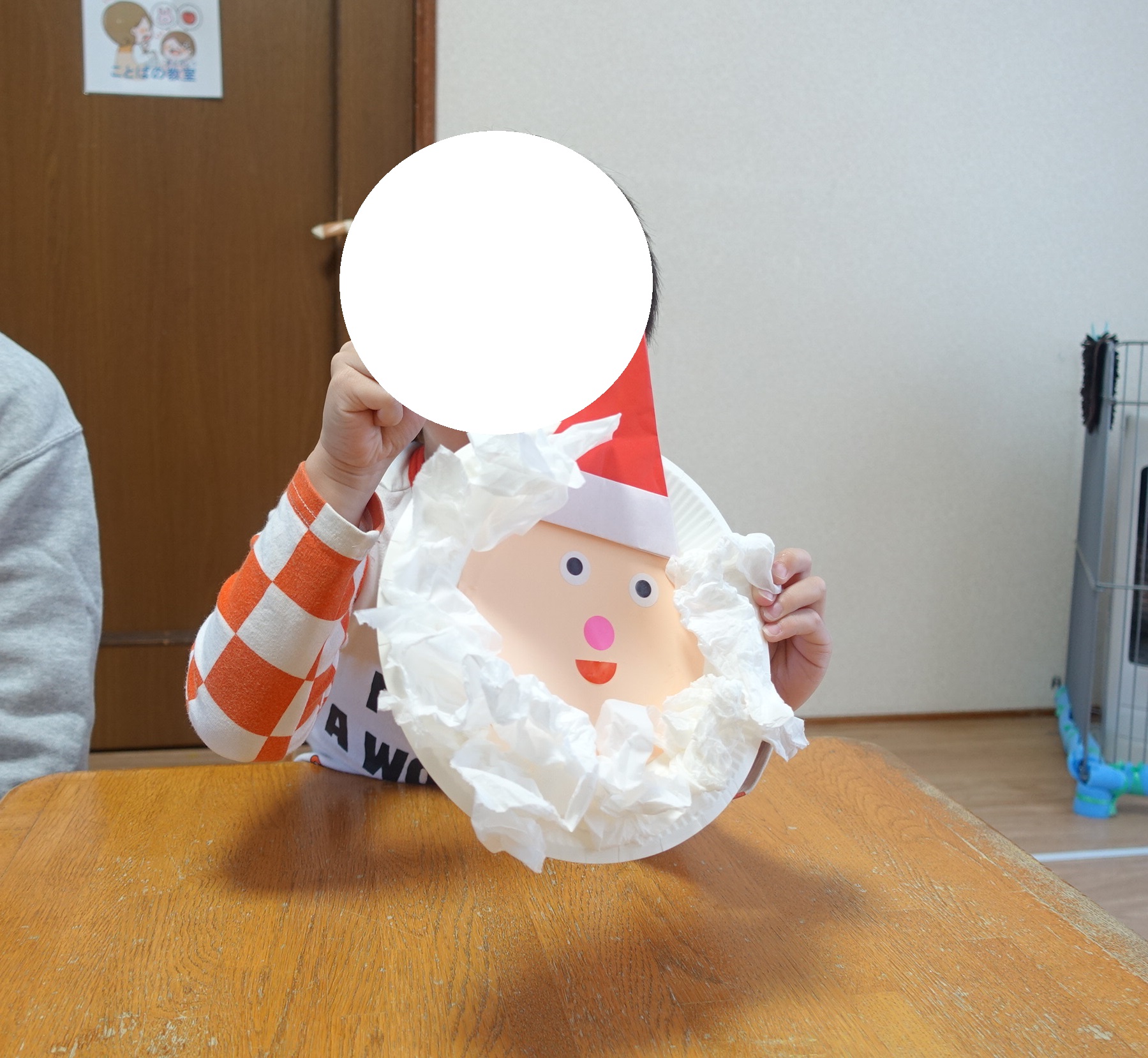 最後はティッシュで作ったひげを貼って、立派なサンタクロースが完成しました🎅✨