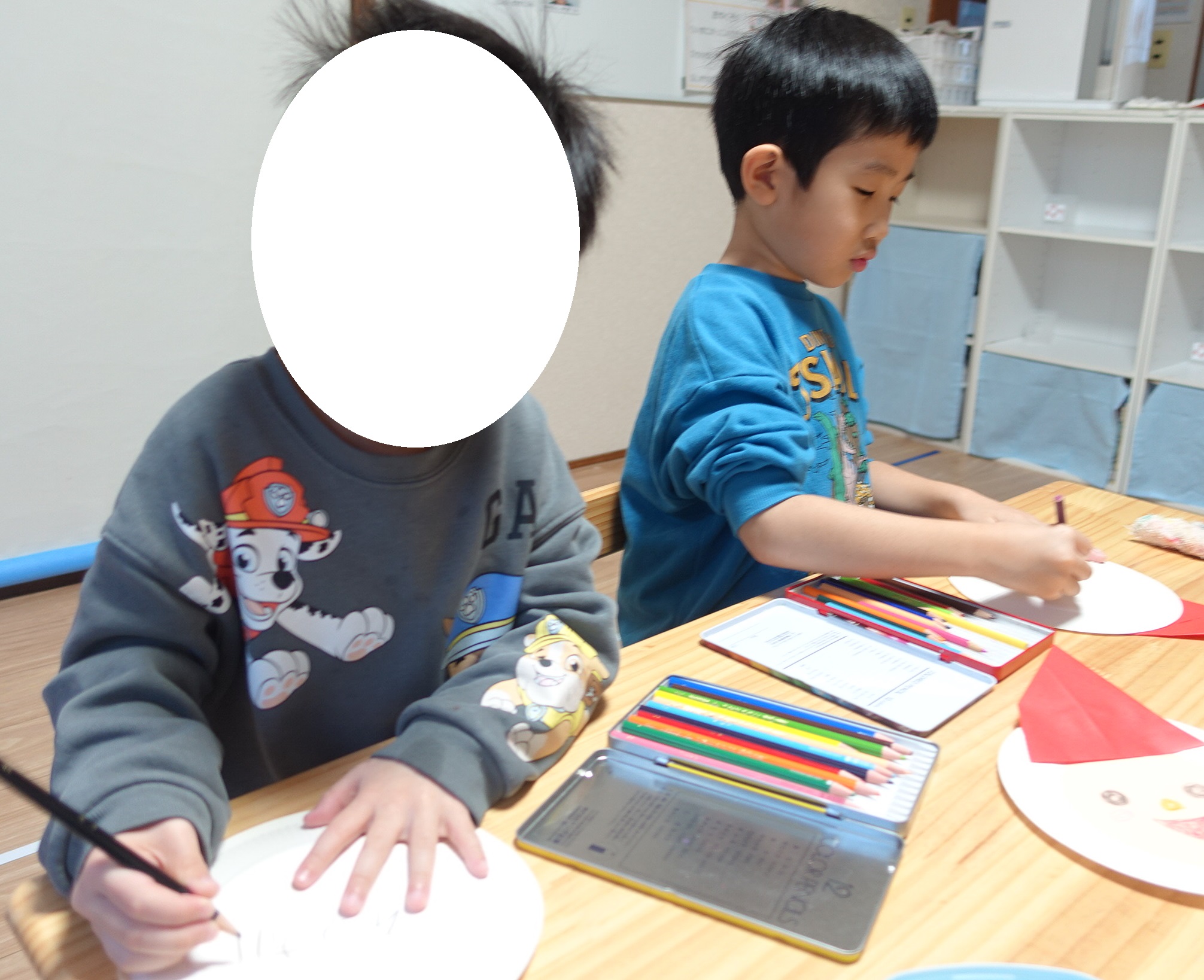 帽子を貼ったあとは、お顔を自分で描いて表情豊かなサンタさんに😊
