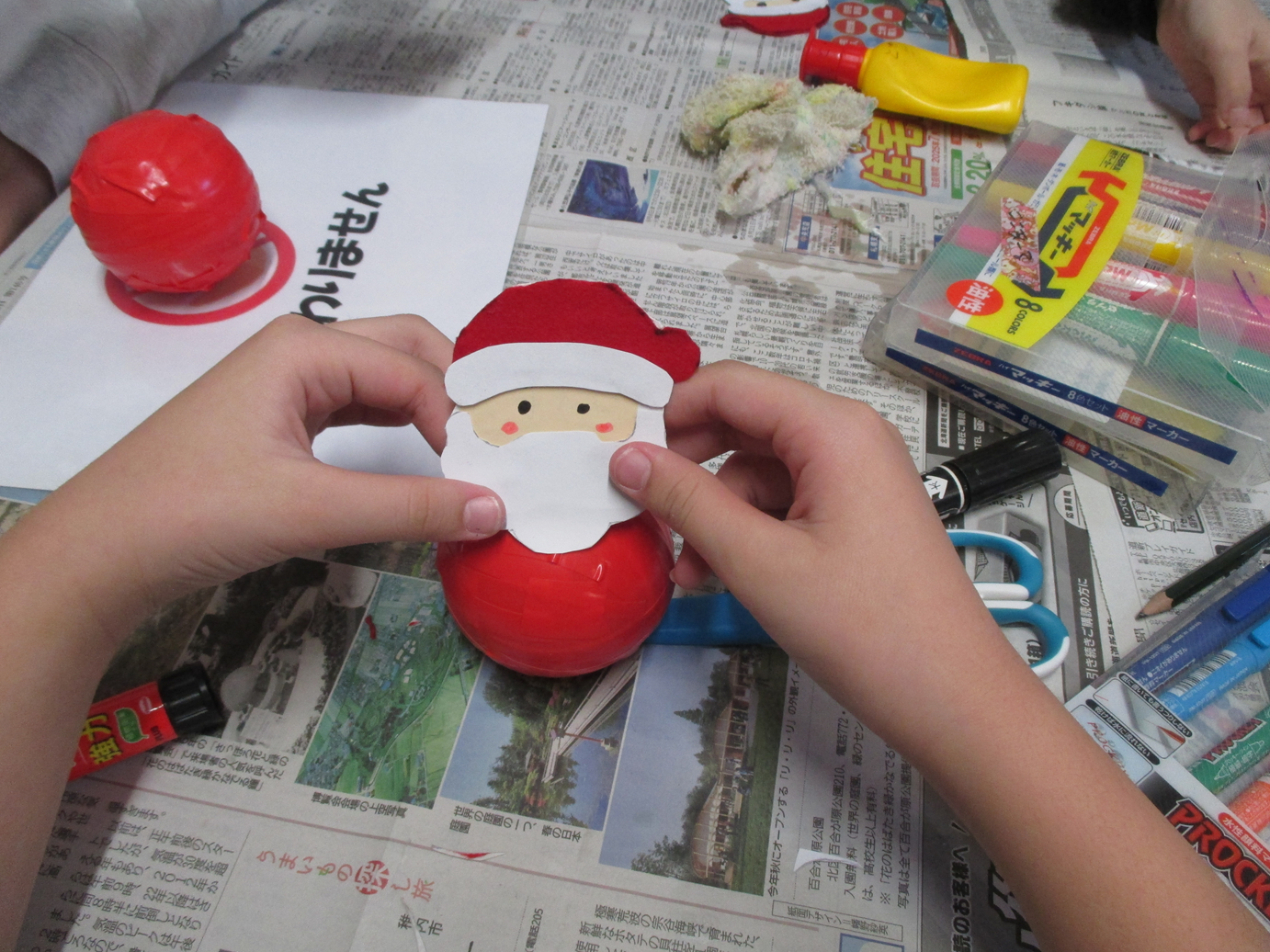 「ここもう少し巻こうかな」「サンタにほっぺつけようかな」と自分で工夫しながら作っていましたよ♪