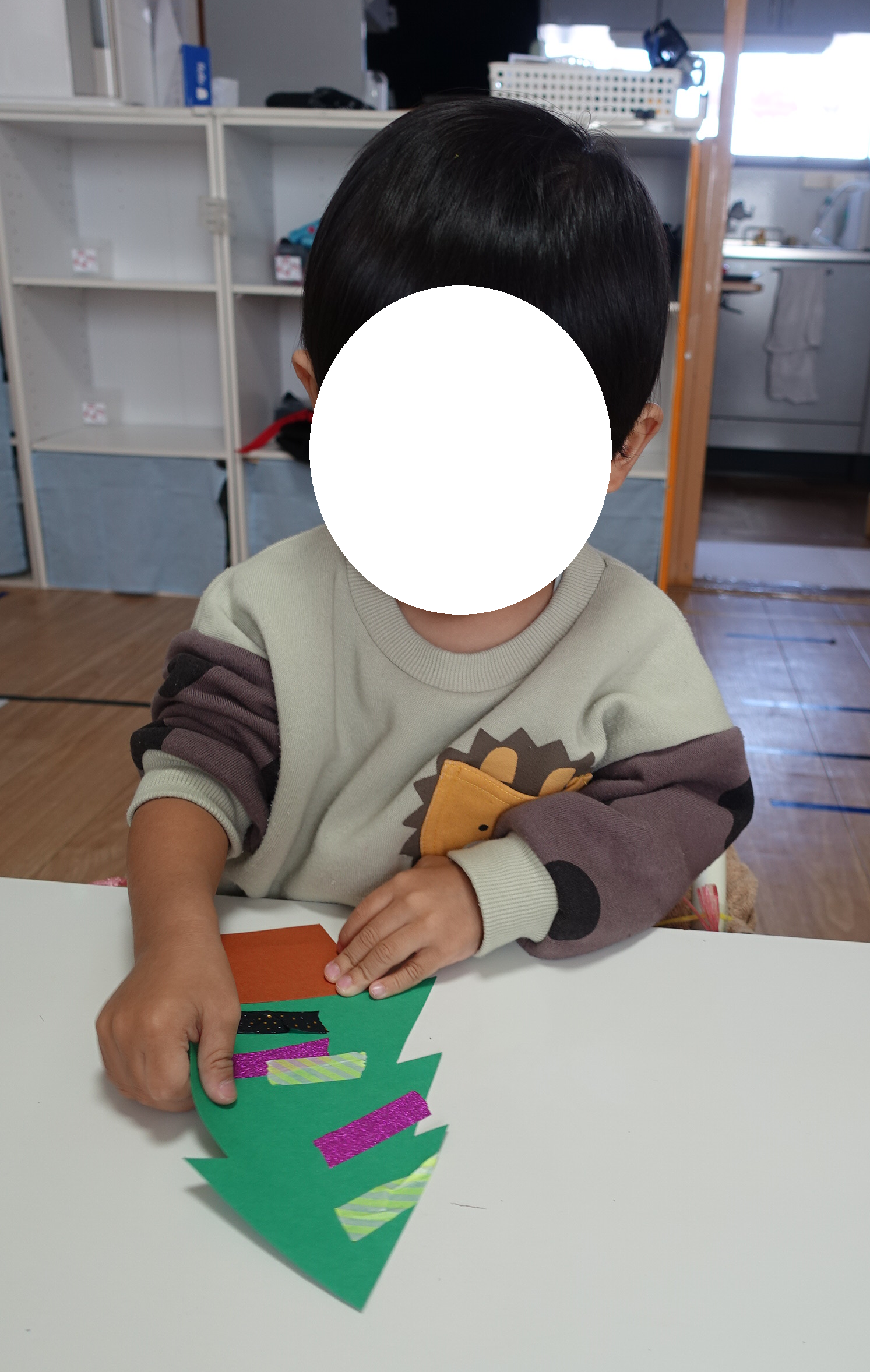 ぺんぎんくらすでは、マスキングテープをちぎってツリーに貼る活動を行いました🎄