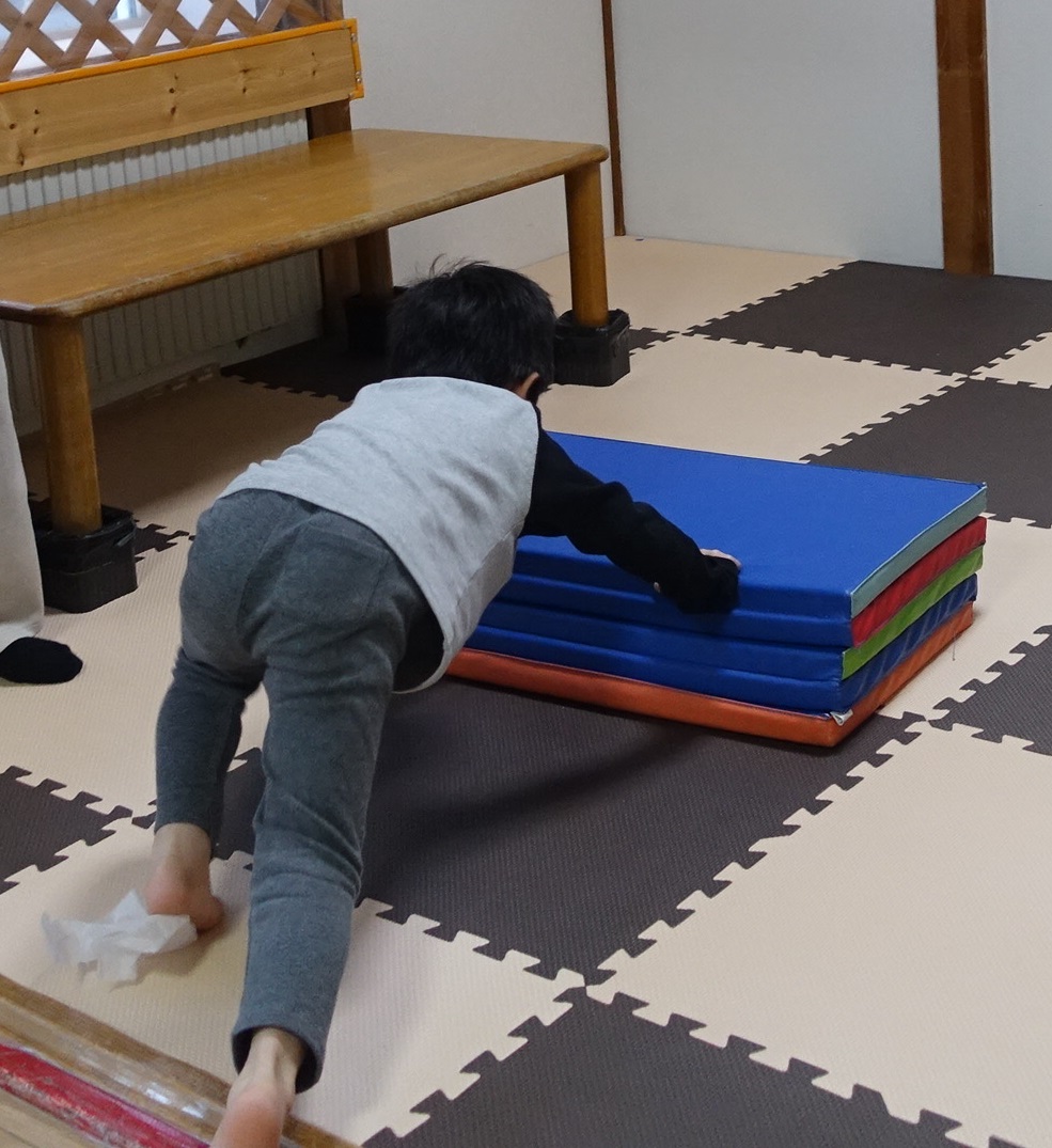 マットを雑巾がけのように、壁までぐーっと押して進みました。