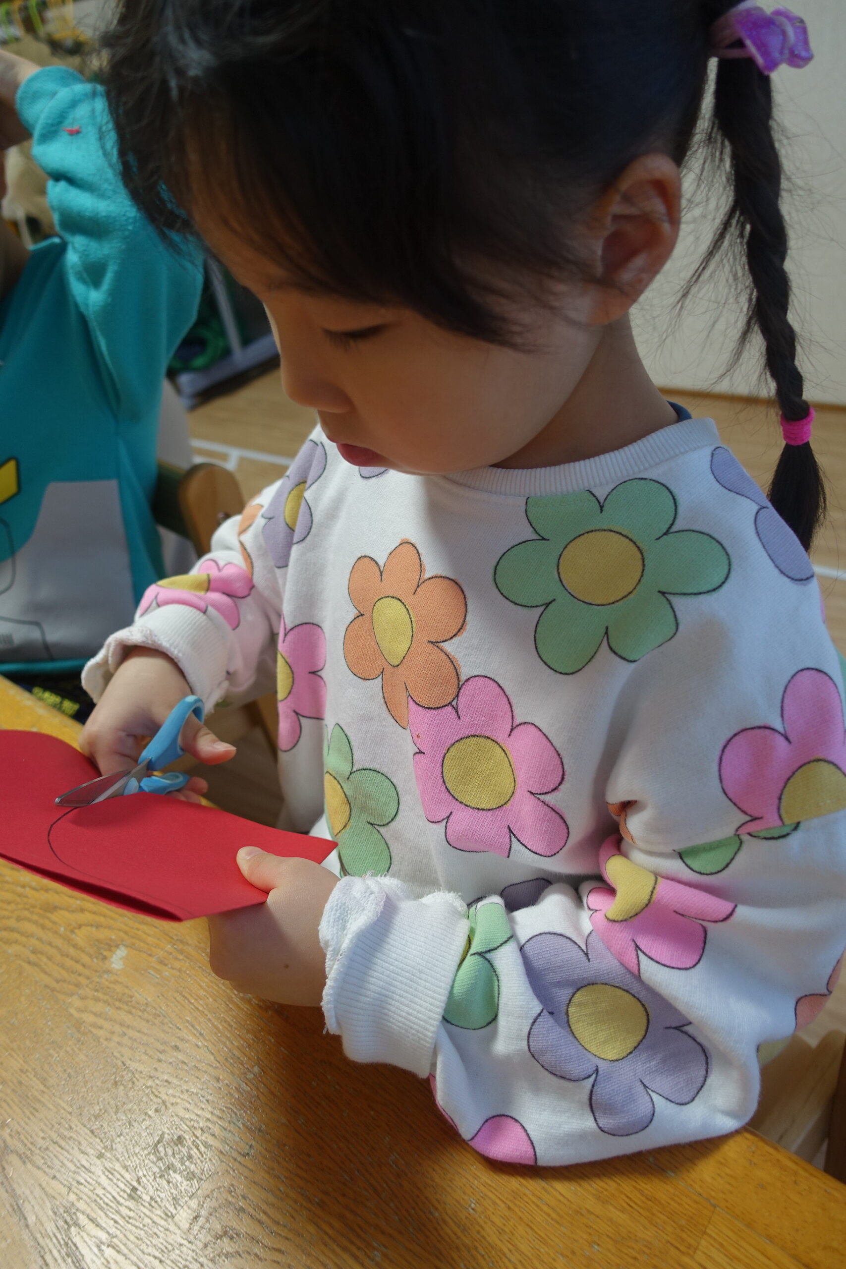 見本を見ながら、黒い線を意識してハサミを使い、丁寧に切ることができました✂️