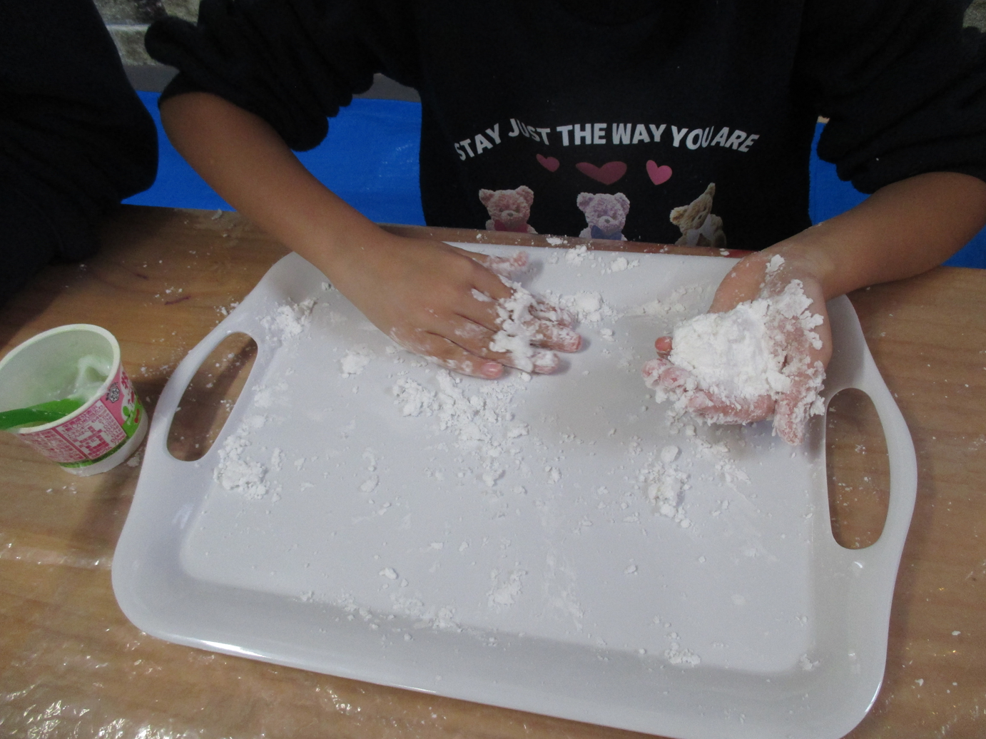 手いっぱいに感触を楽しみながら夢中でこねていましたよ♪