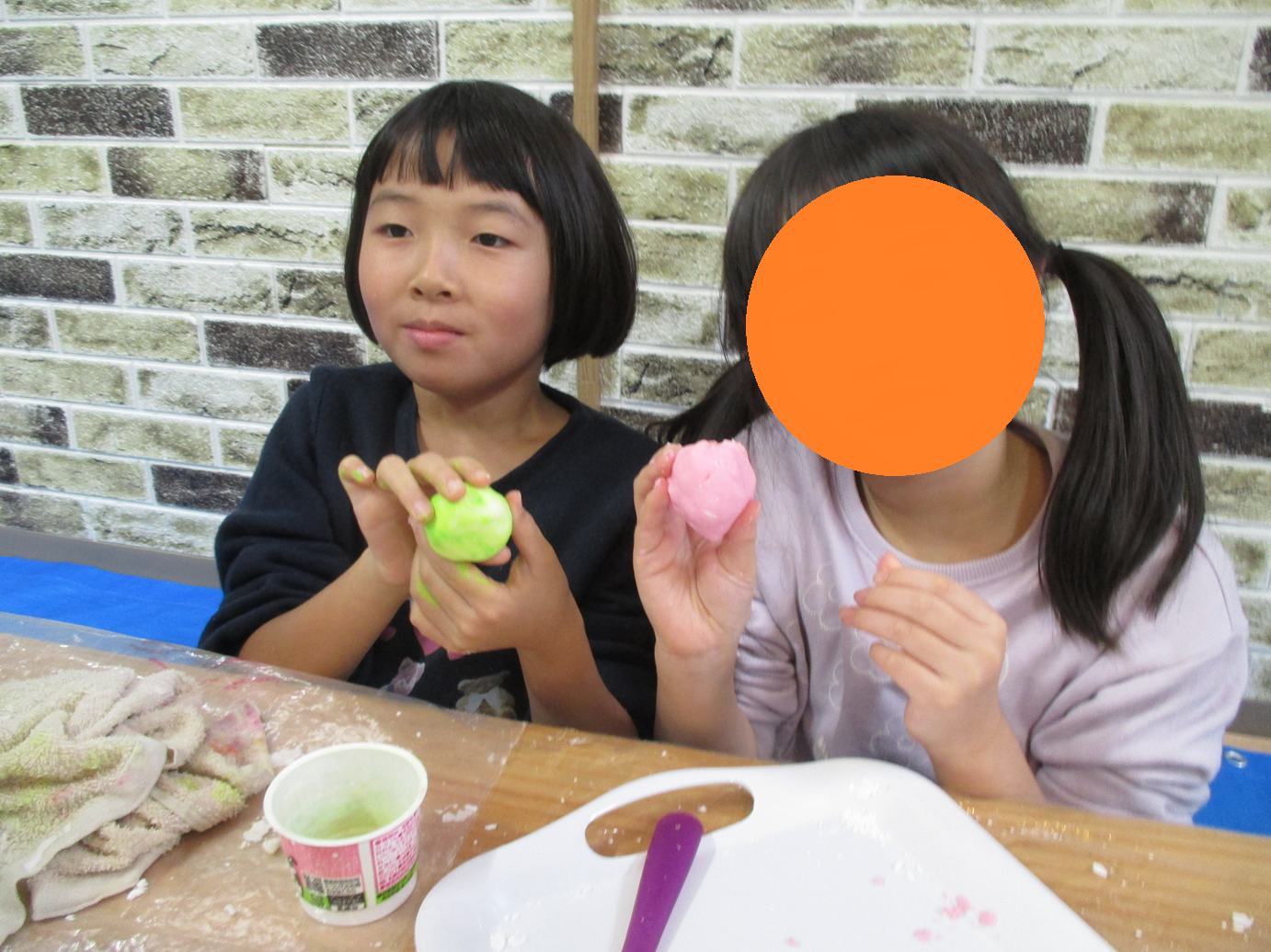絵の具を混ぜて色付けもすると、カラフルでとってもきれいな大福ねんどに🎨