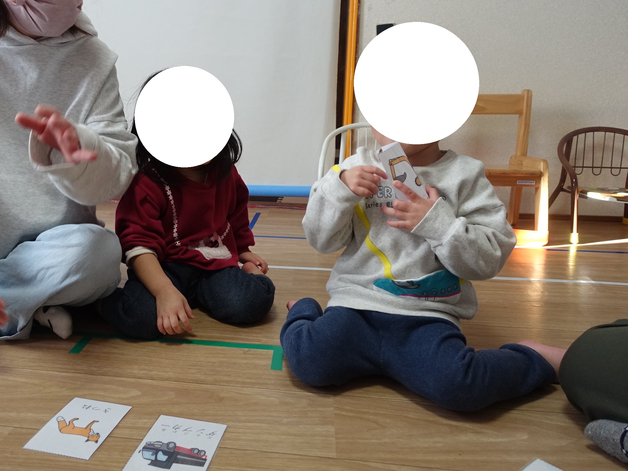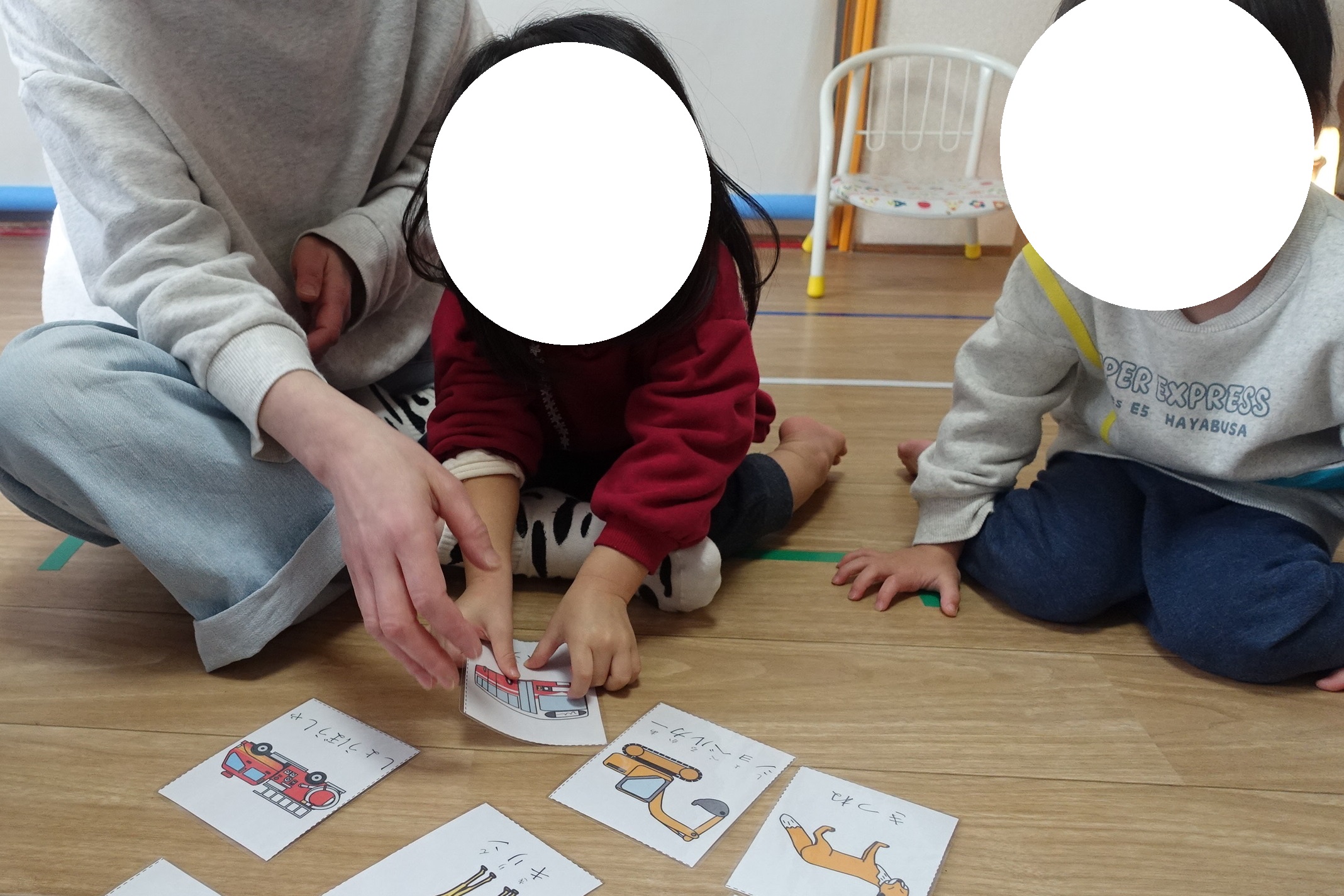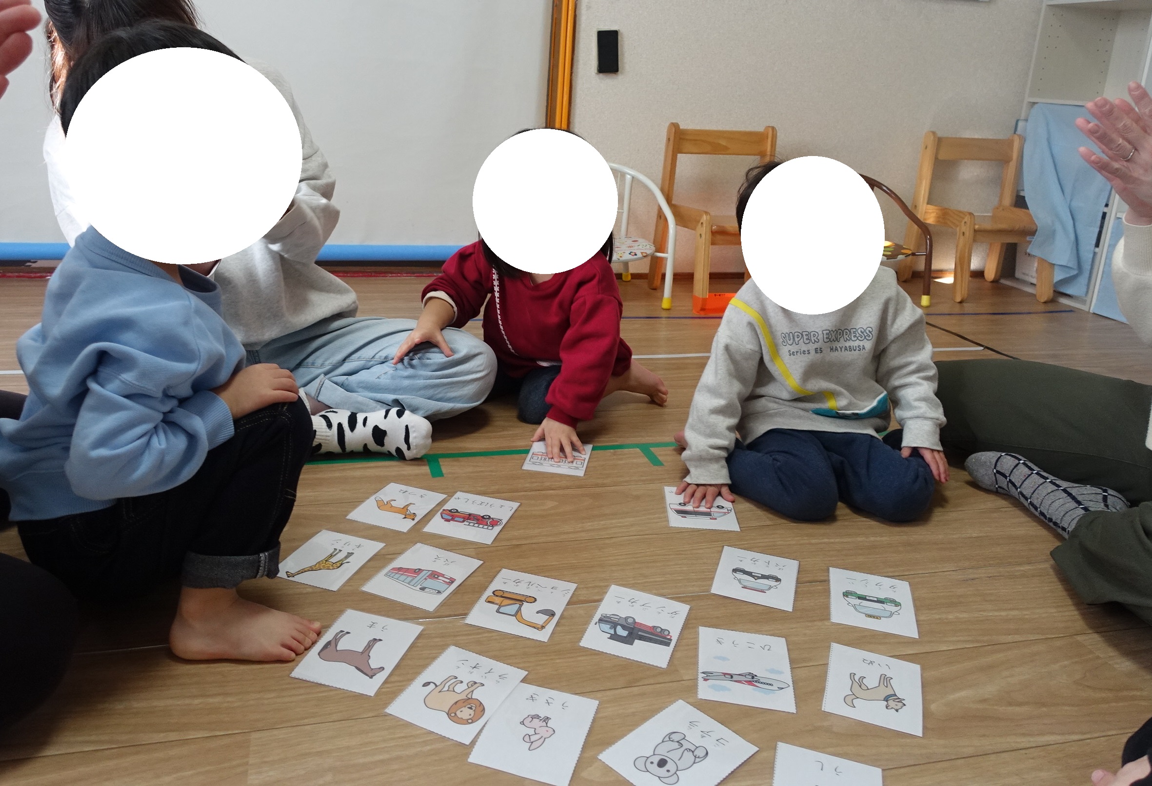 ぺんぎんくらすでは、のりもの・たべもの・どうぶつのイラストを使って、かるた遊びを行いました✨