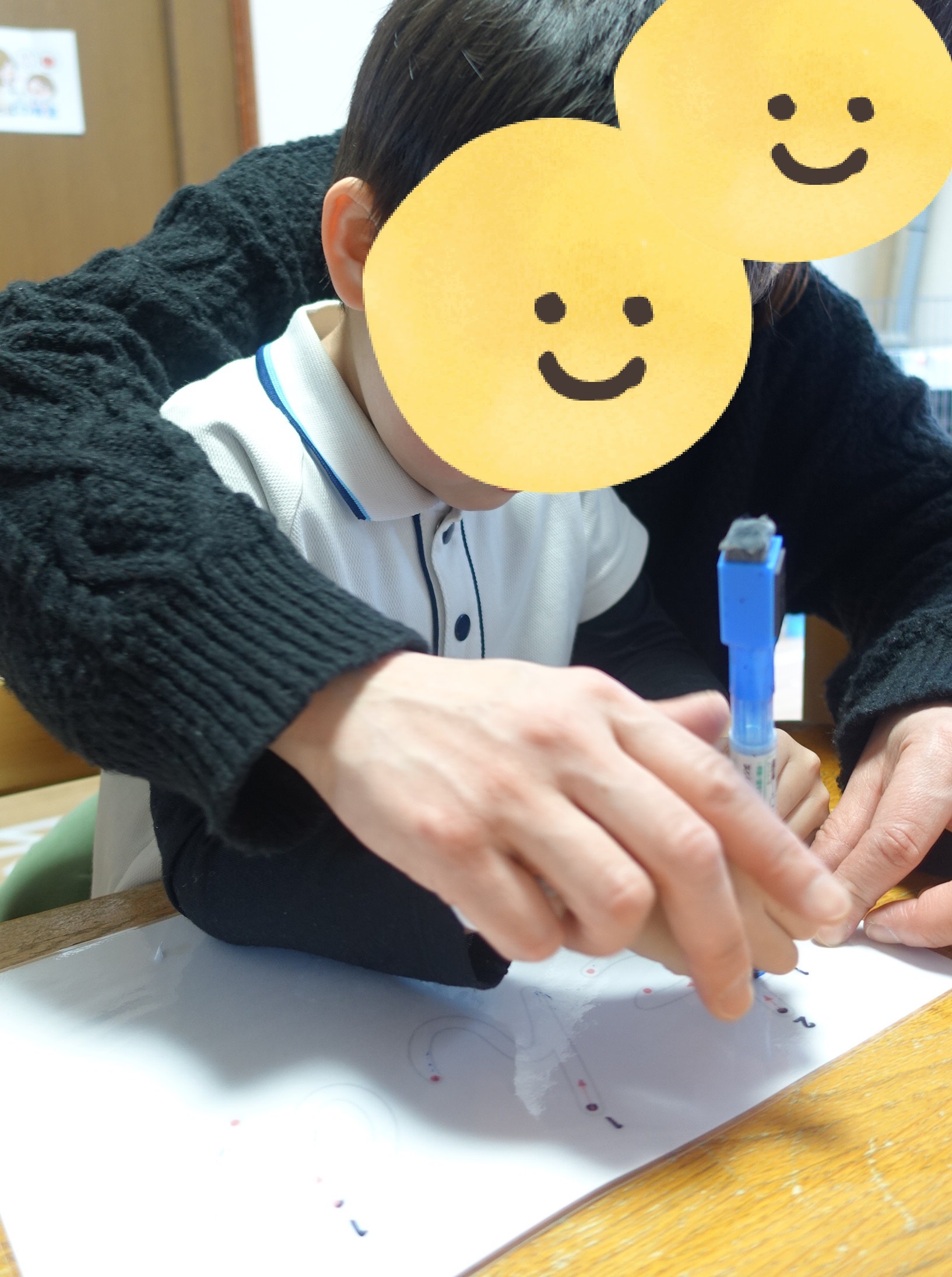 書き順が書いてある紙をラミネートし、その上からホワイトボード用ペンでなぞり書きをしました😊