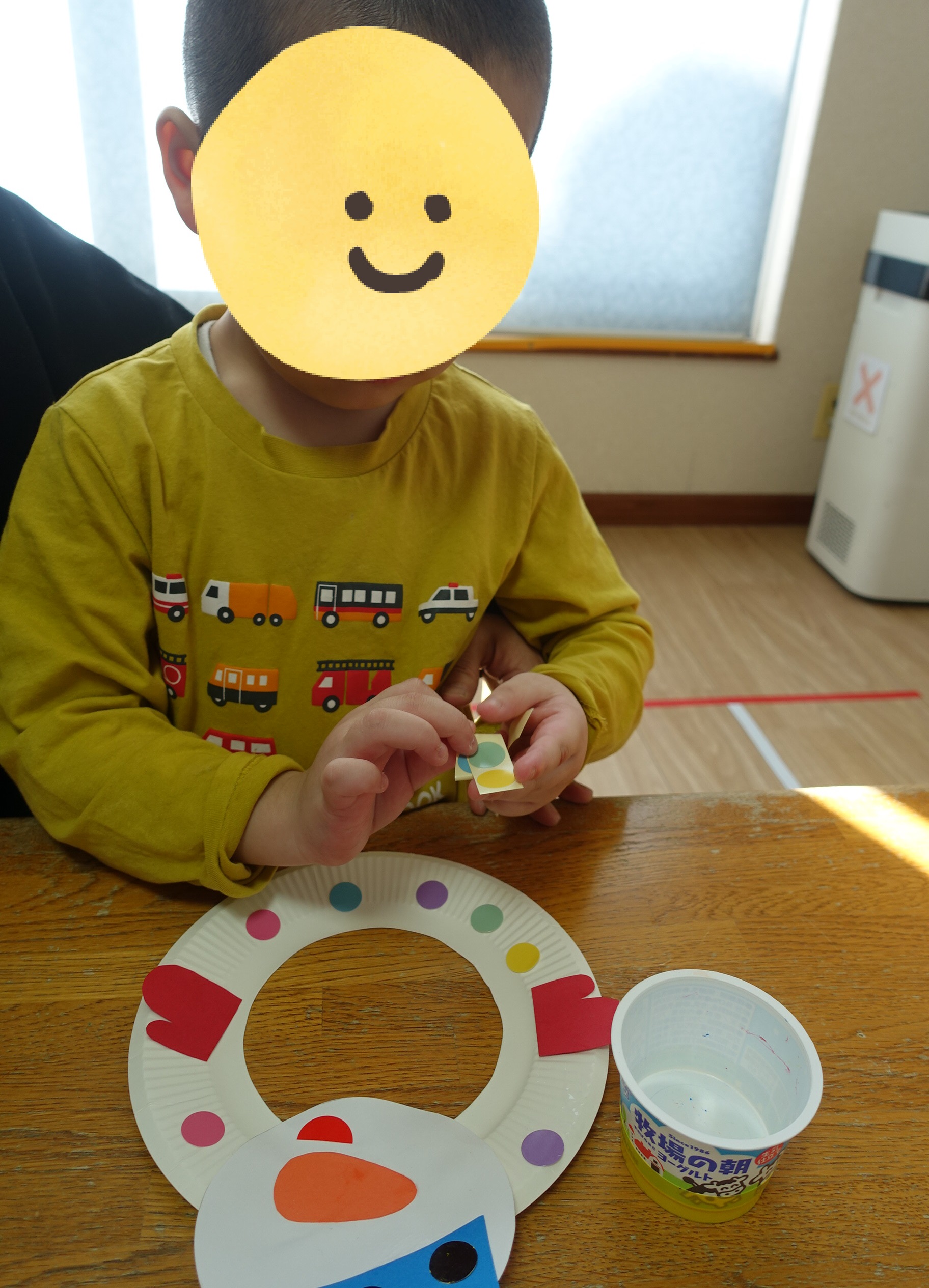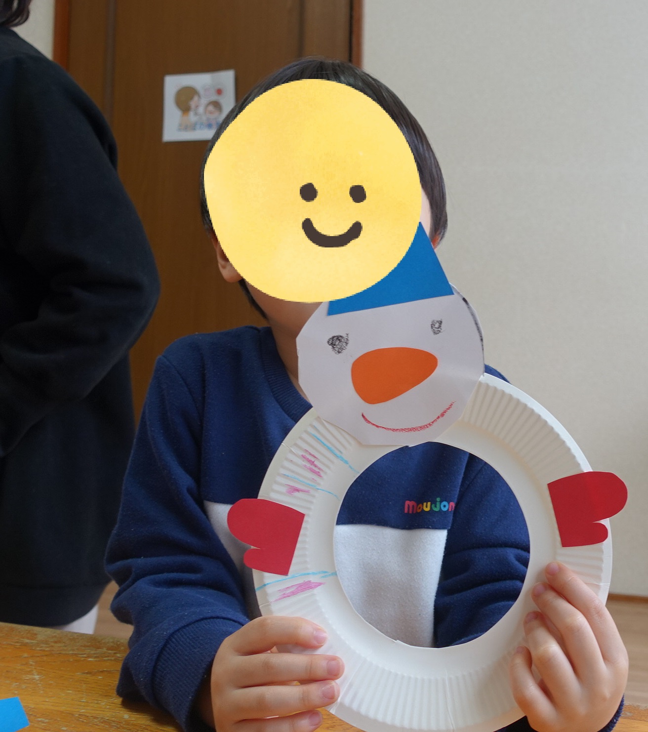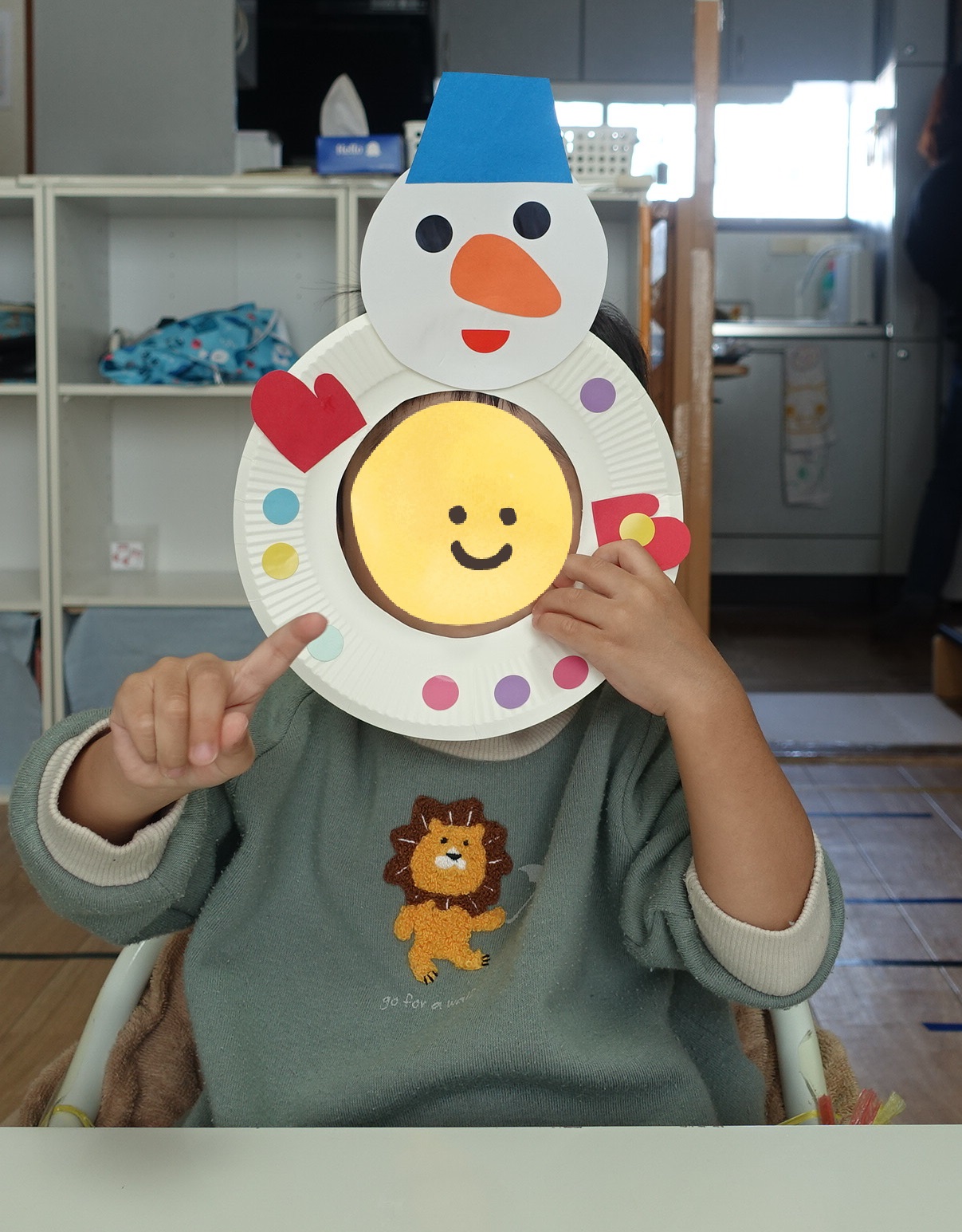最後はシールで自由に飾り付けをし、可愛らしい雪だるまが完成しました🎵