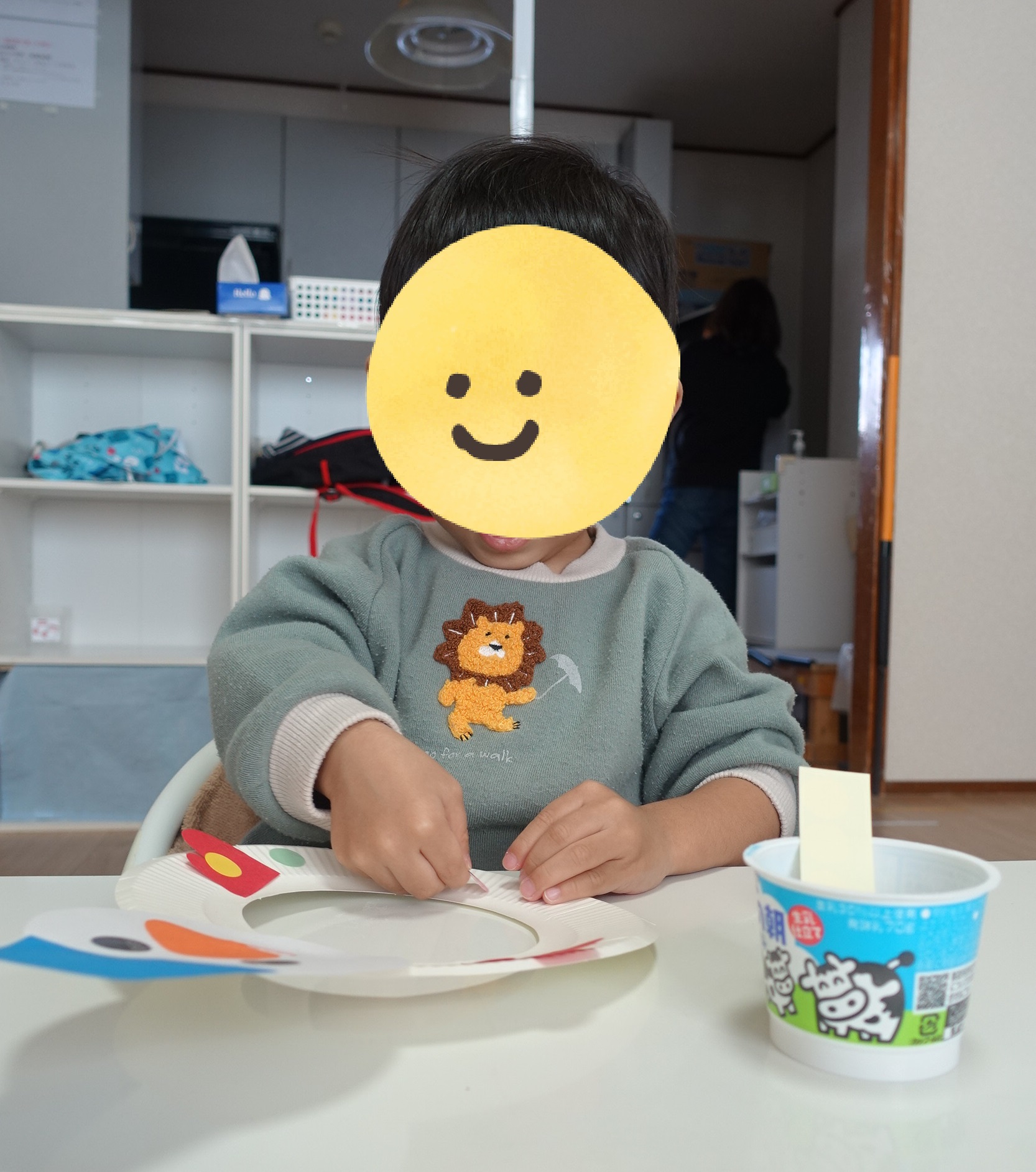 「にこにこにする!」「まゆげもかく!」など、自分なりのイメージを持って表現する姿が見られ、どれも個性豊かな作品になりました😊