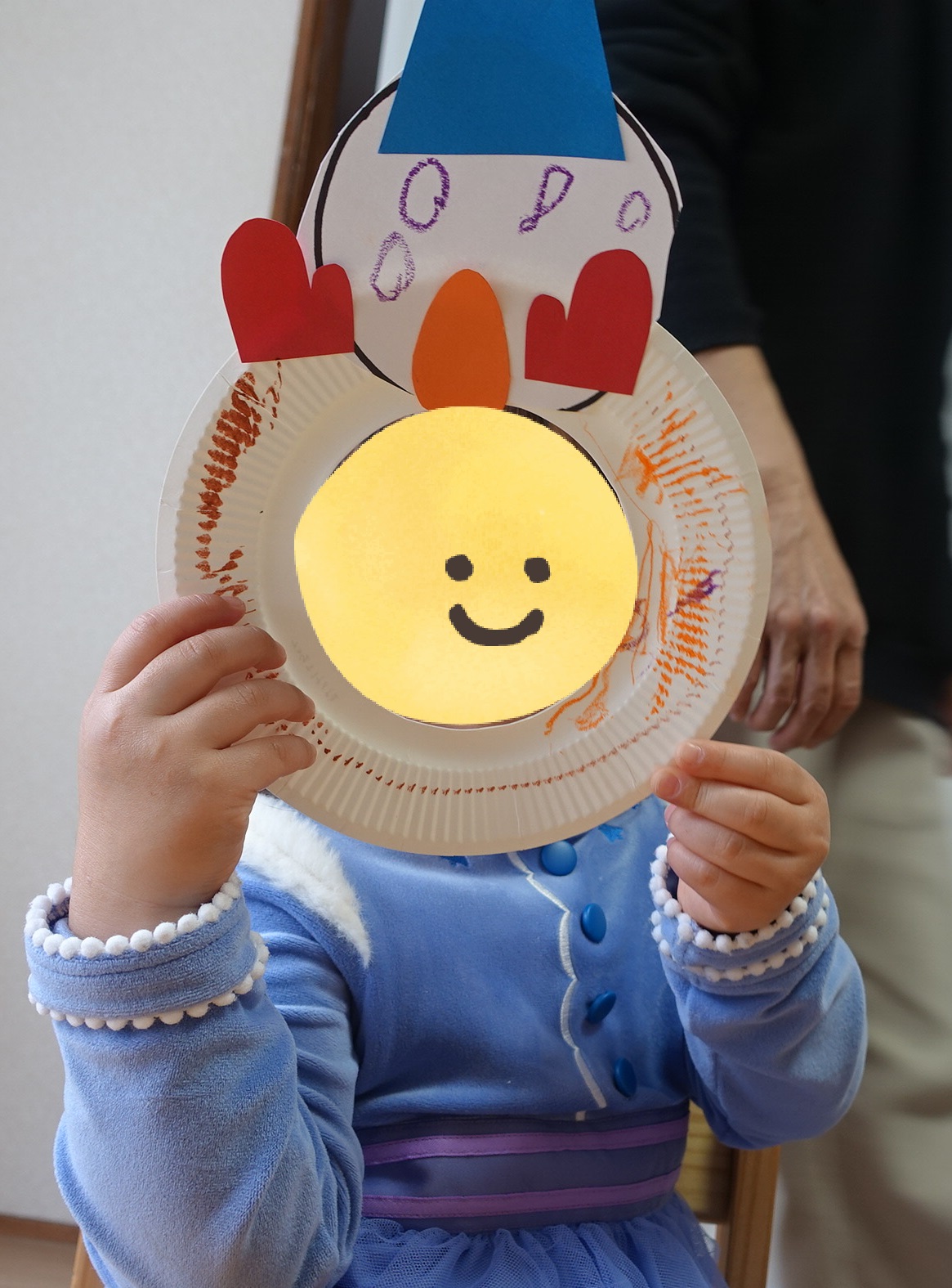 その後、帽子や鼻などのパーツを貼り付け、仕上げにクレヨンで目や口を描いたり、模様をつけたりして仕上げました🖍️✨