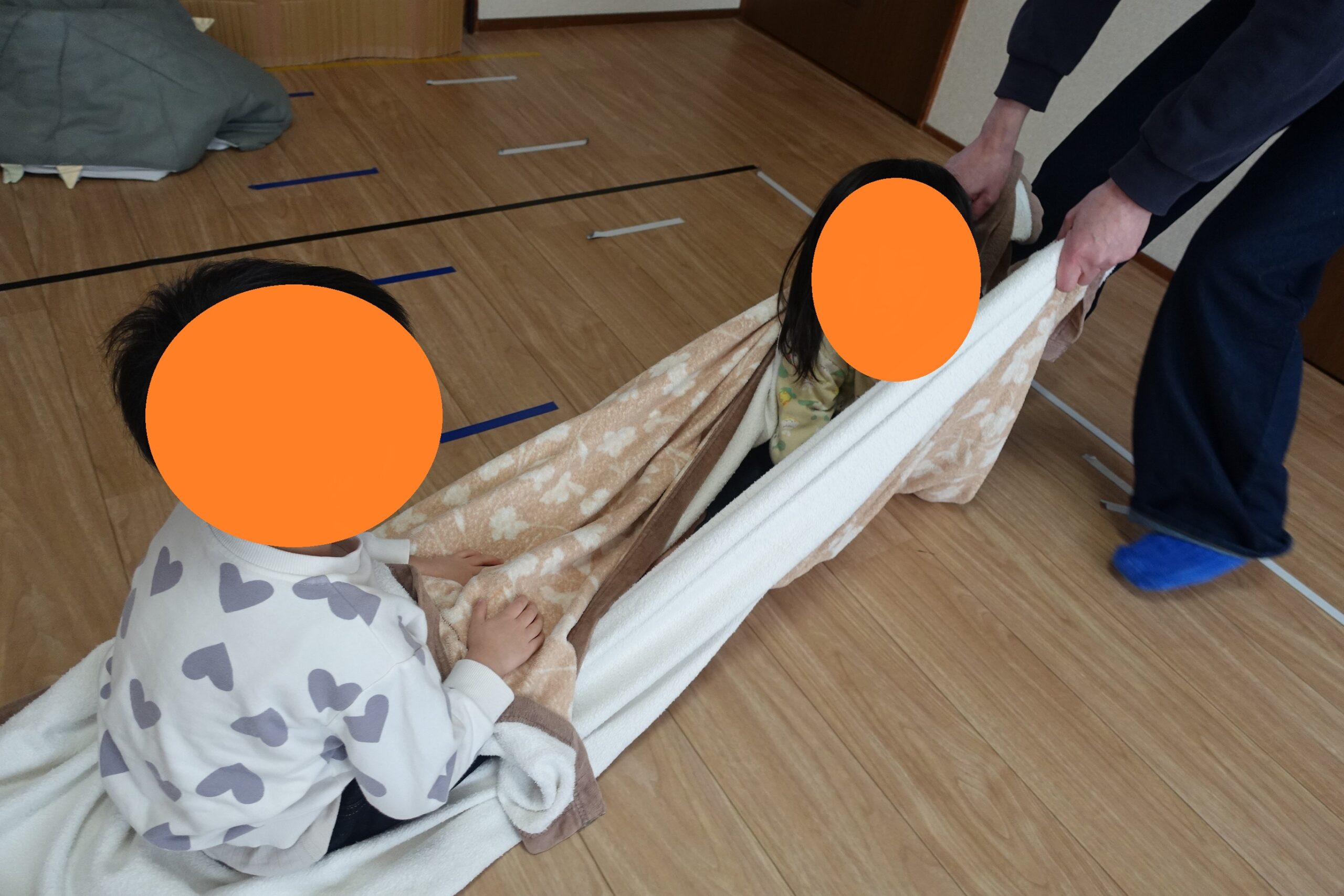 シーツそりでは、引っ張ってもらいながら進む動きに「もう一回!」と笑顔があふれていました😊