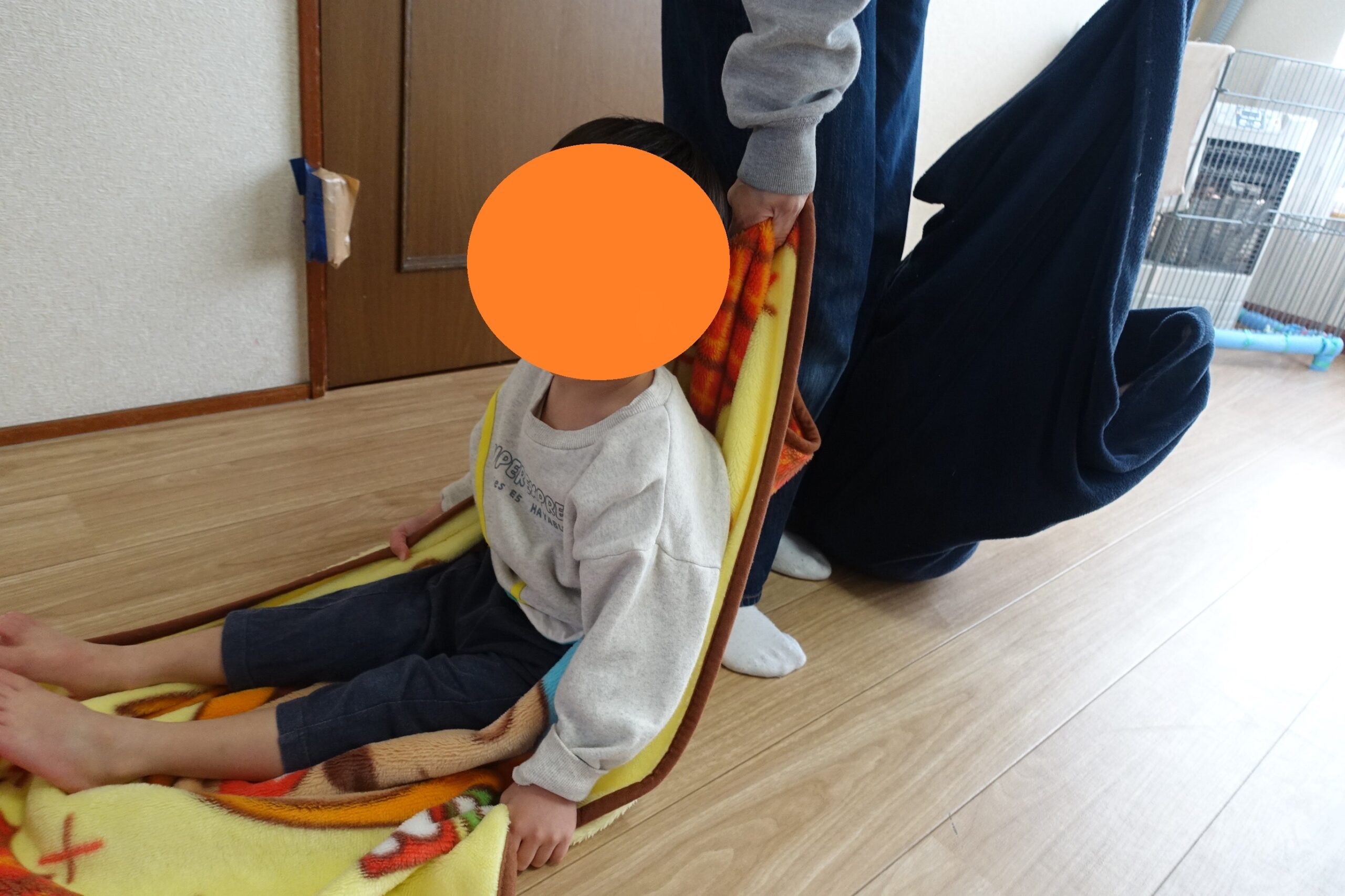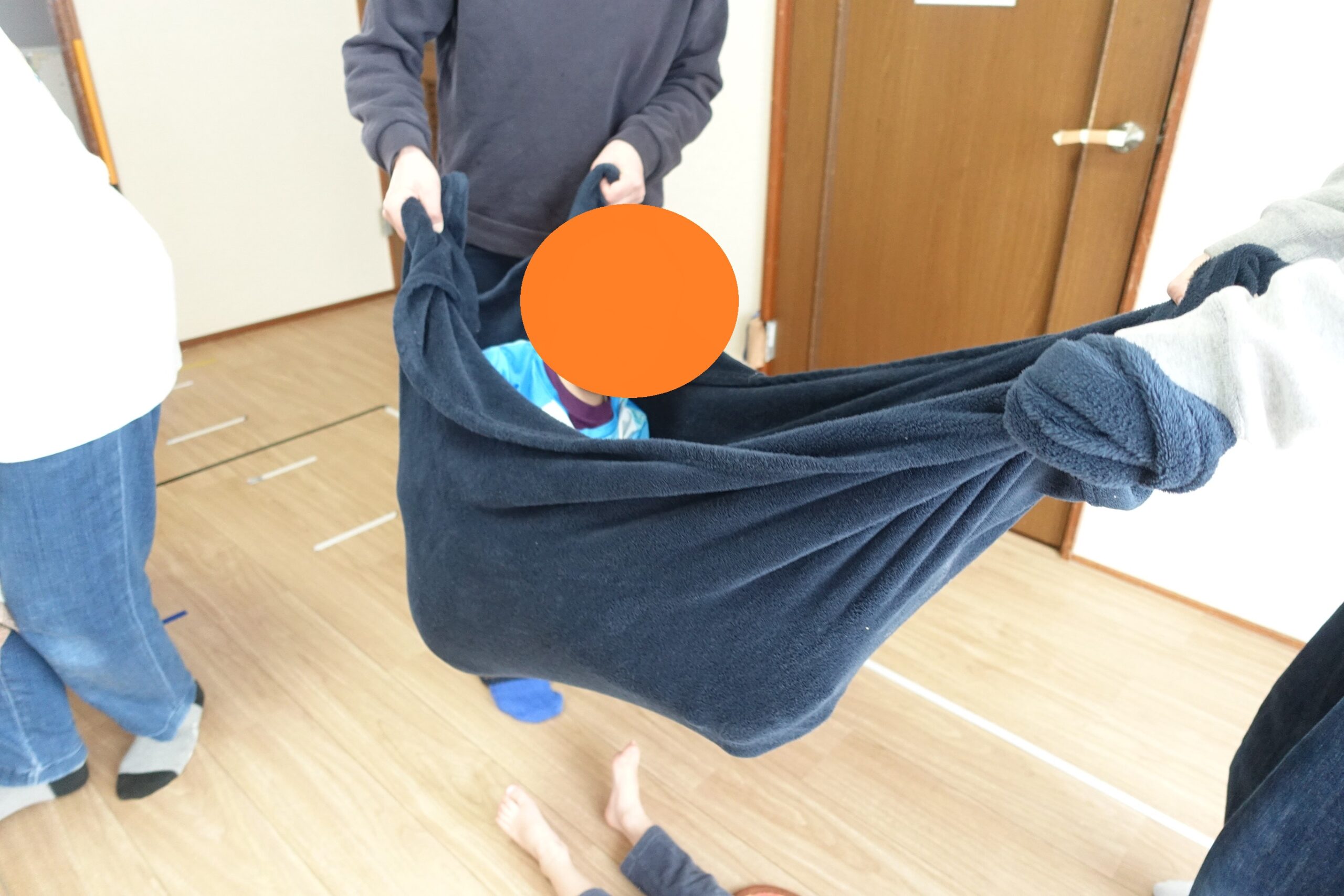 シーツに包まれながら、お友だちの顔をのぞきこみ、「いた!」と嬉しそうに笑う姿がとても微笑ましかったです✨
