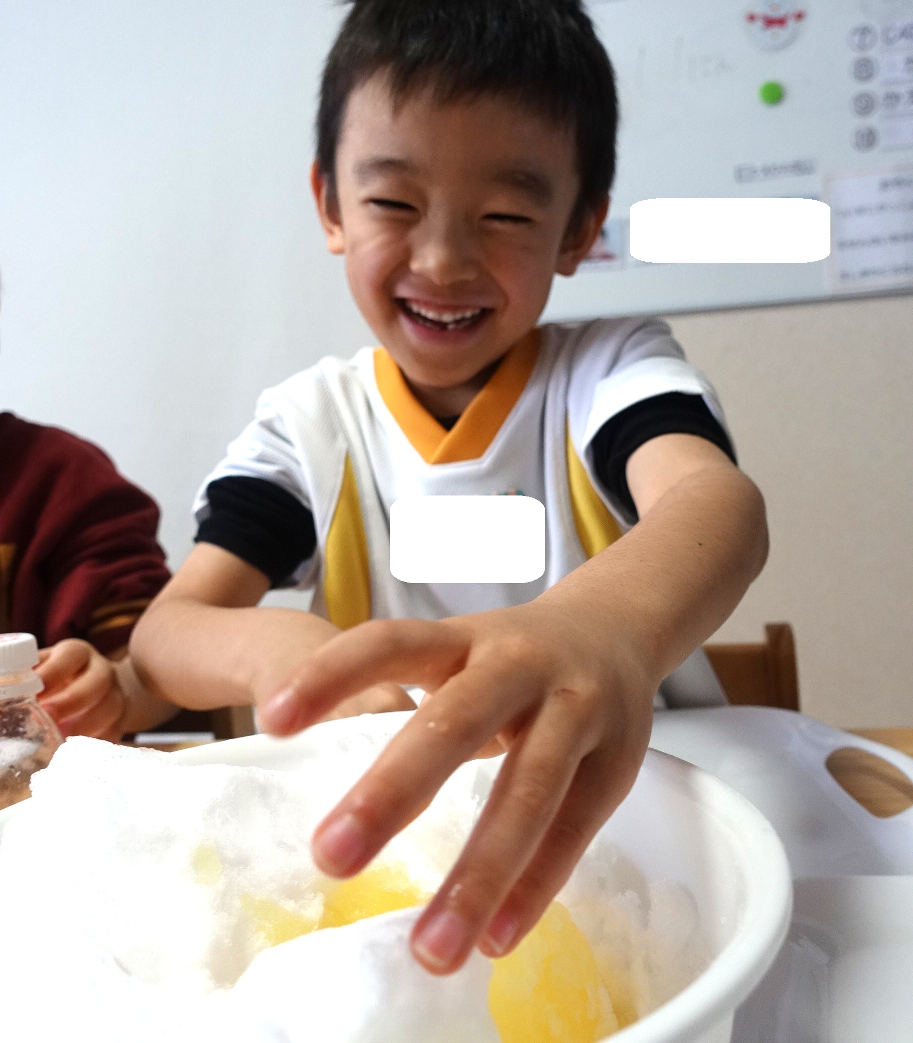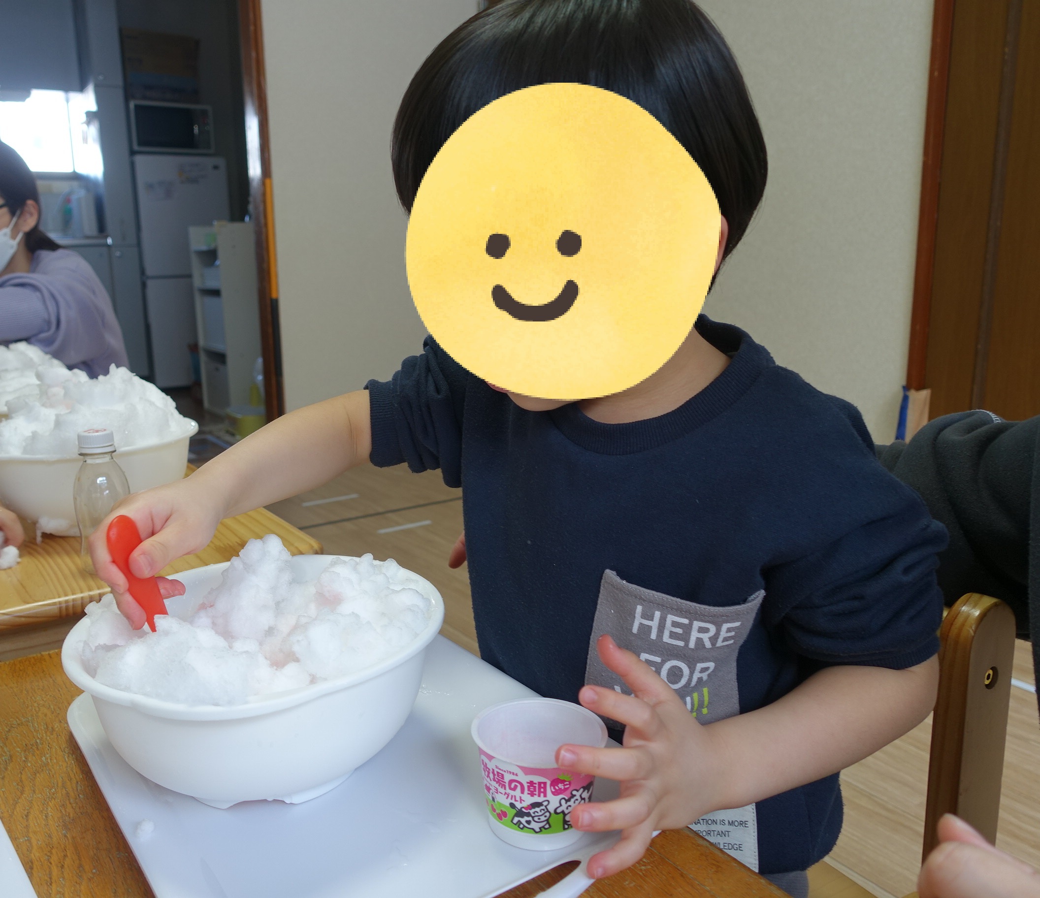 雪がだんだん解けていく様子も観察しながら、「実験みたい~!」と楽しそうな声がたくさん聞こえてきました🎵