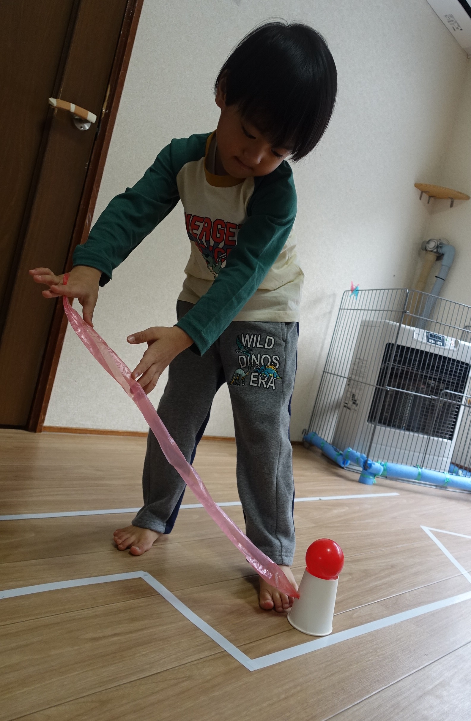 ひもを ゆっくり引っ張りながら 落ちないように運びます💪