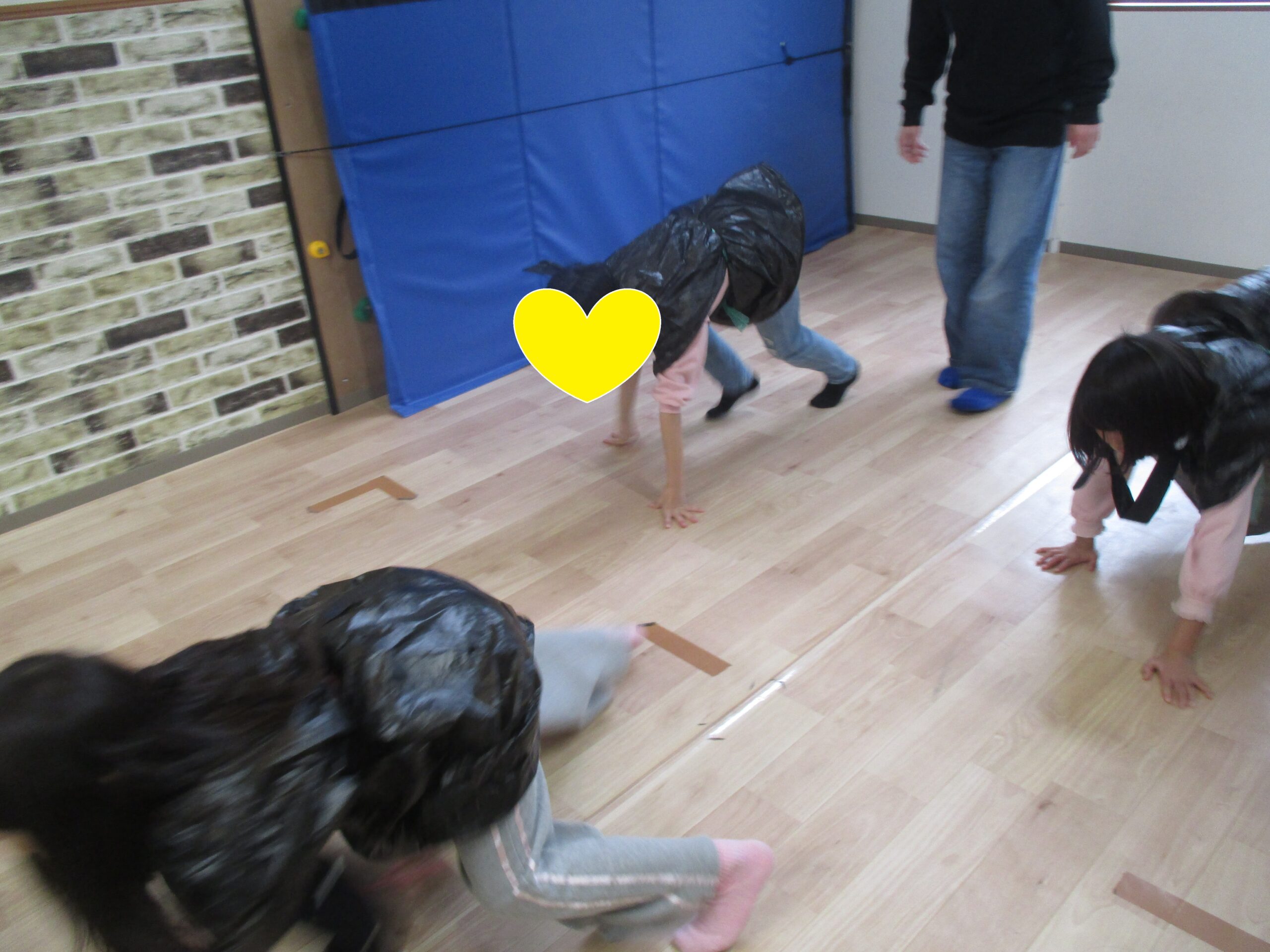 の動きをまねっこ!(^^)!膝を曲げられなかったり、手を使って進めなかったりと、