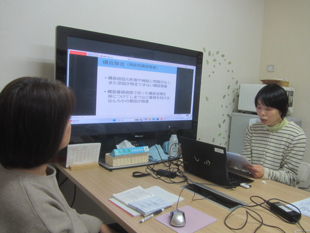 これまでの経過や課題となっている音、これまで行ってきた練習方法、移行後の変化、今後の支援の方向性などについて整理し、共有しました。