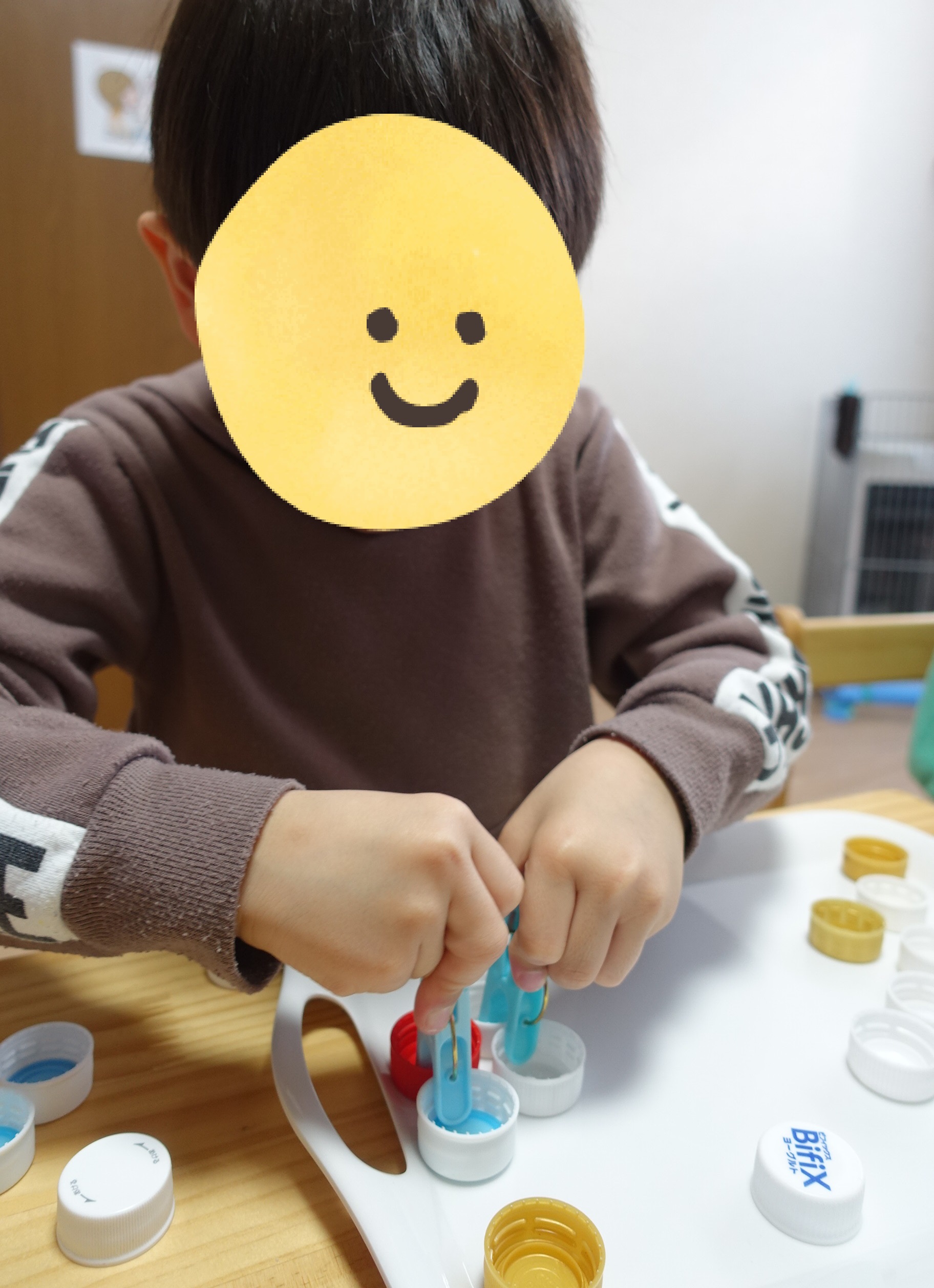 左右それぞれの手を上手に使いながら、集中して取り組む姿が見られました😊