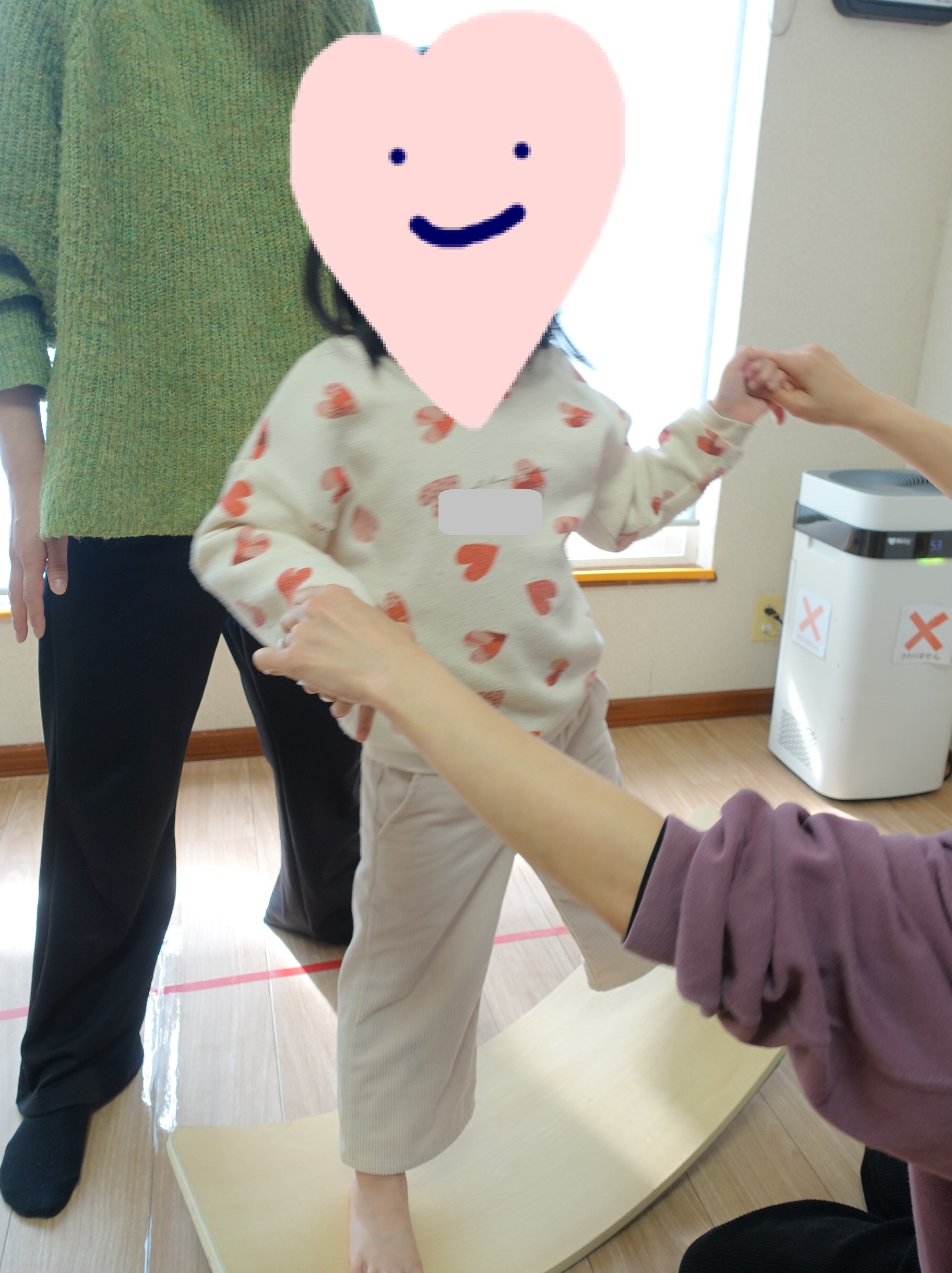 バランスボードに乗ると、体がゆらゆら揺れます💕