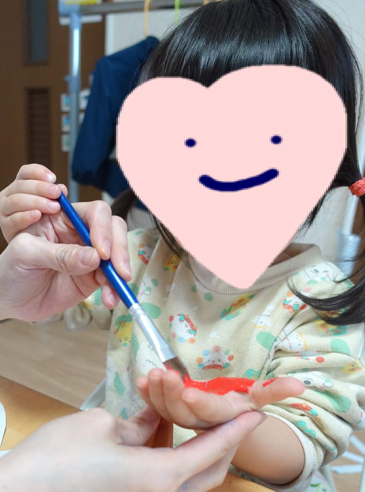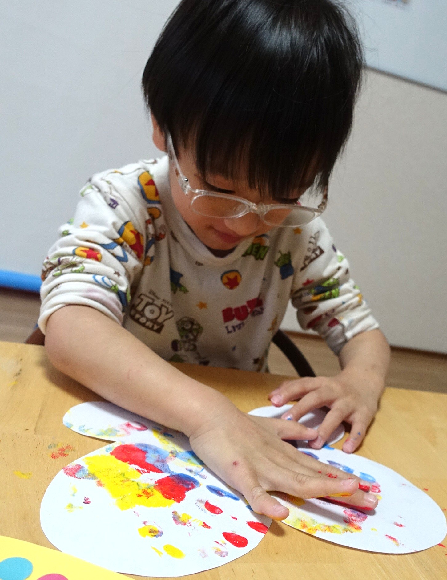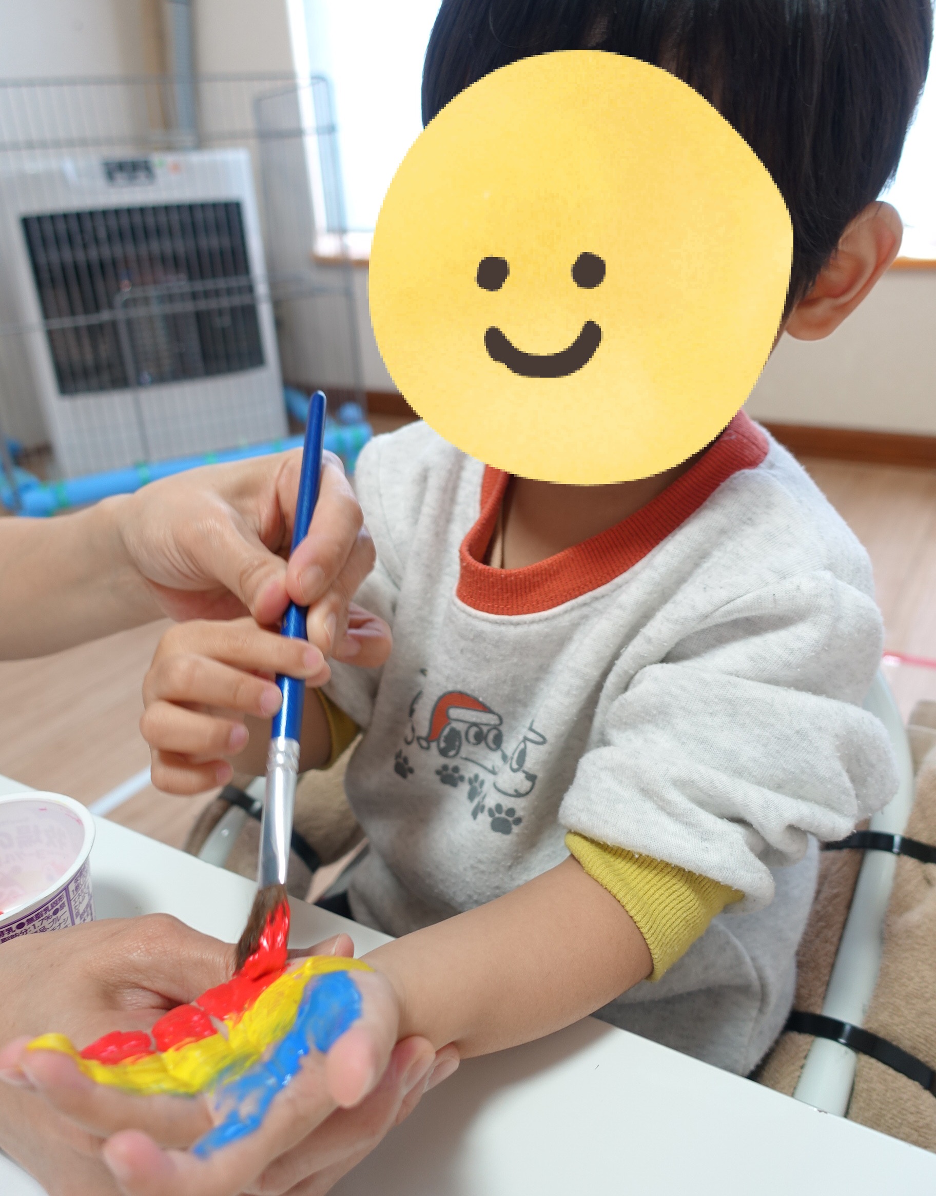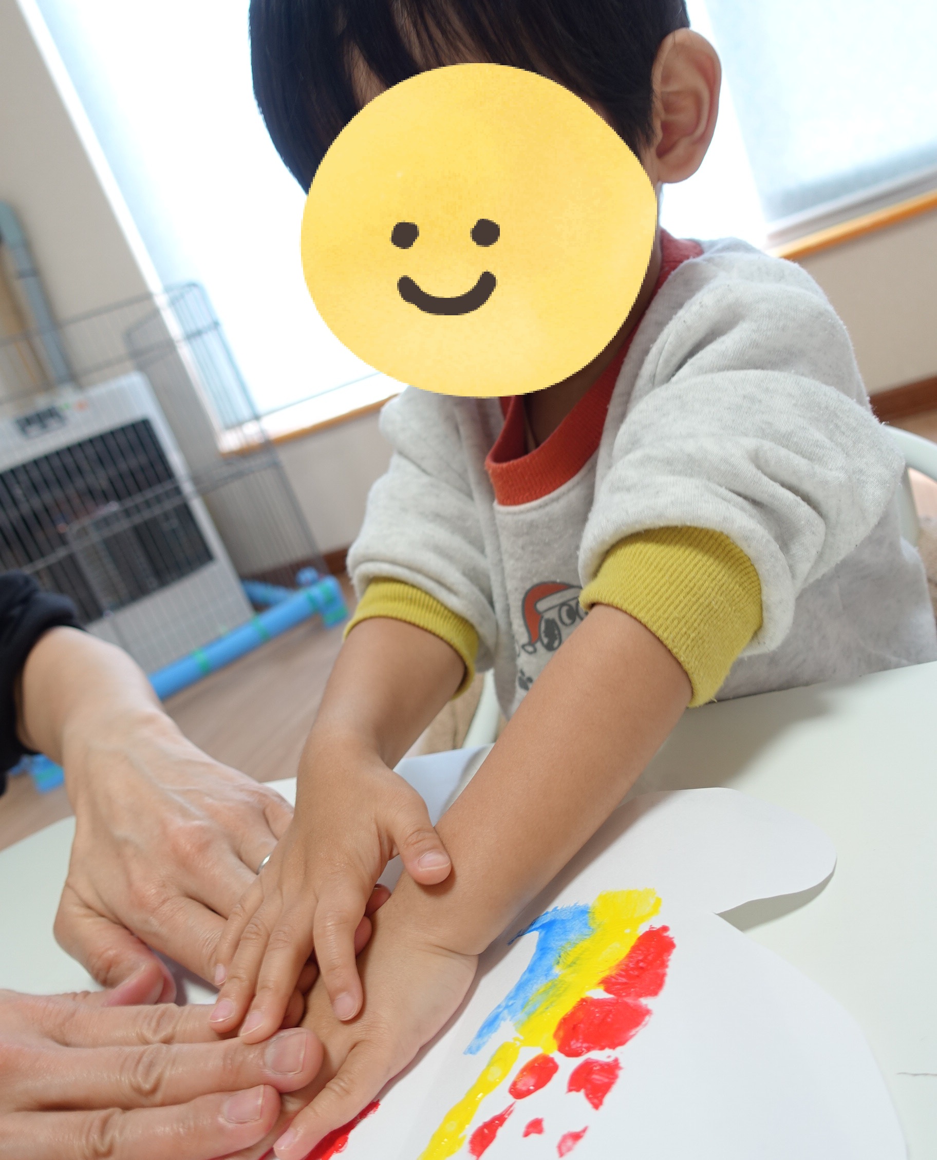 3色の絵の具を使って、手形をぺたぺた🎵一人ひとり違った素敵な模様に仕上がりました😊