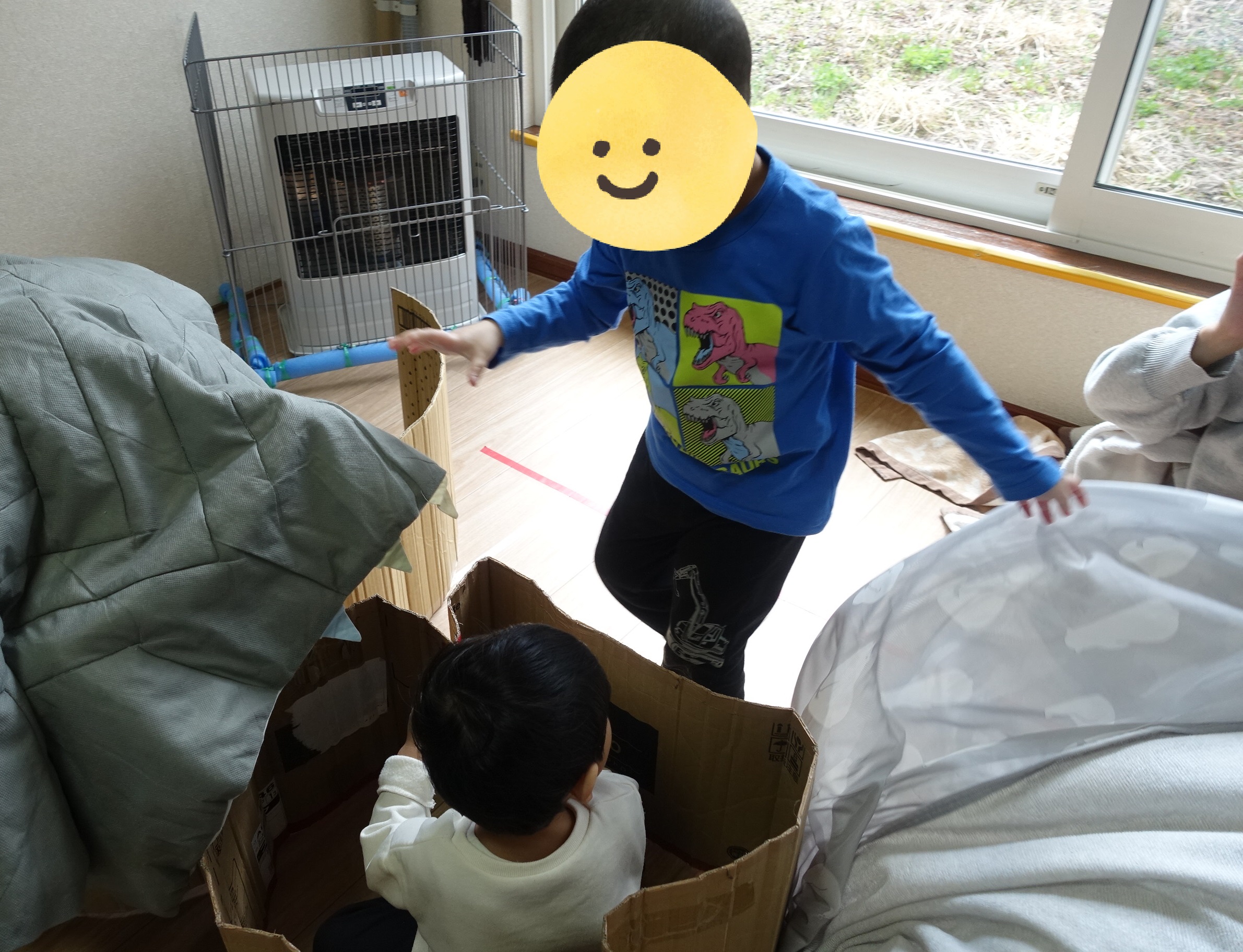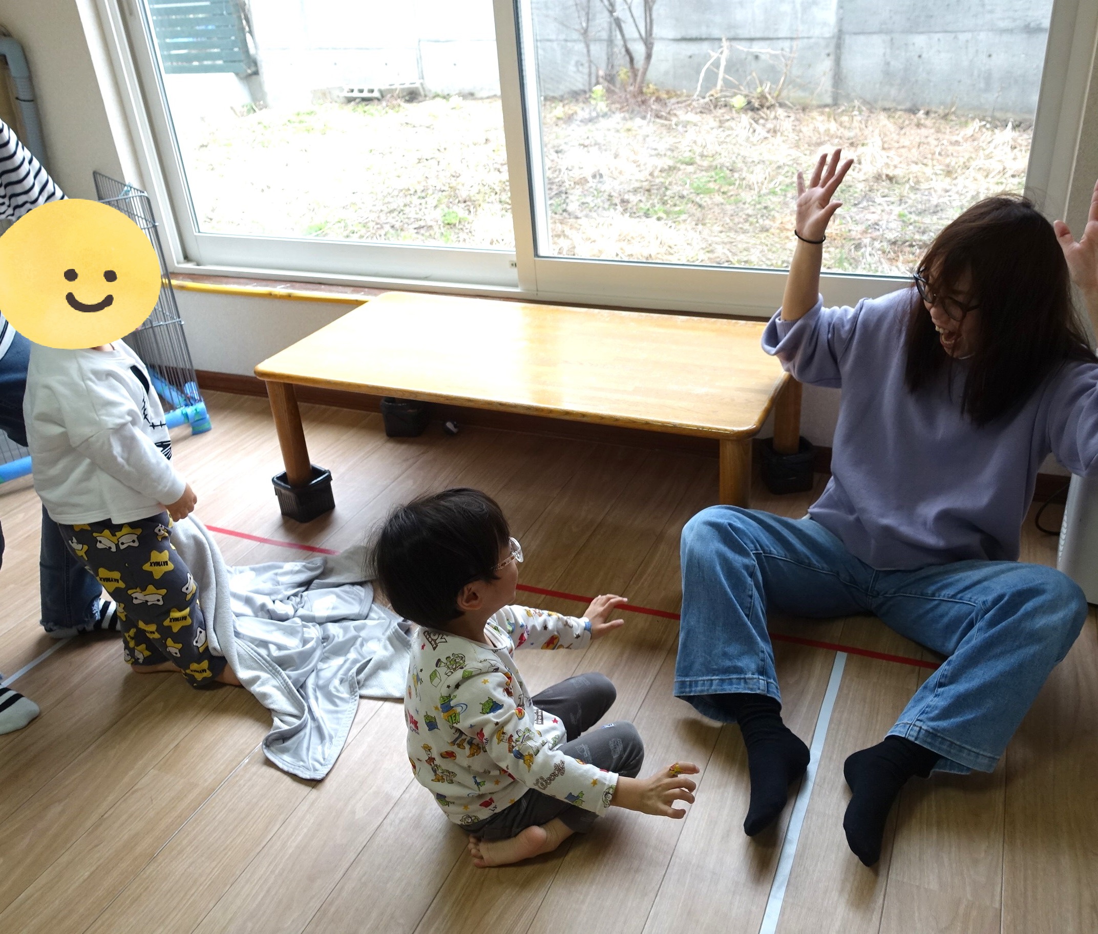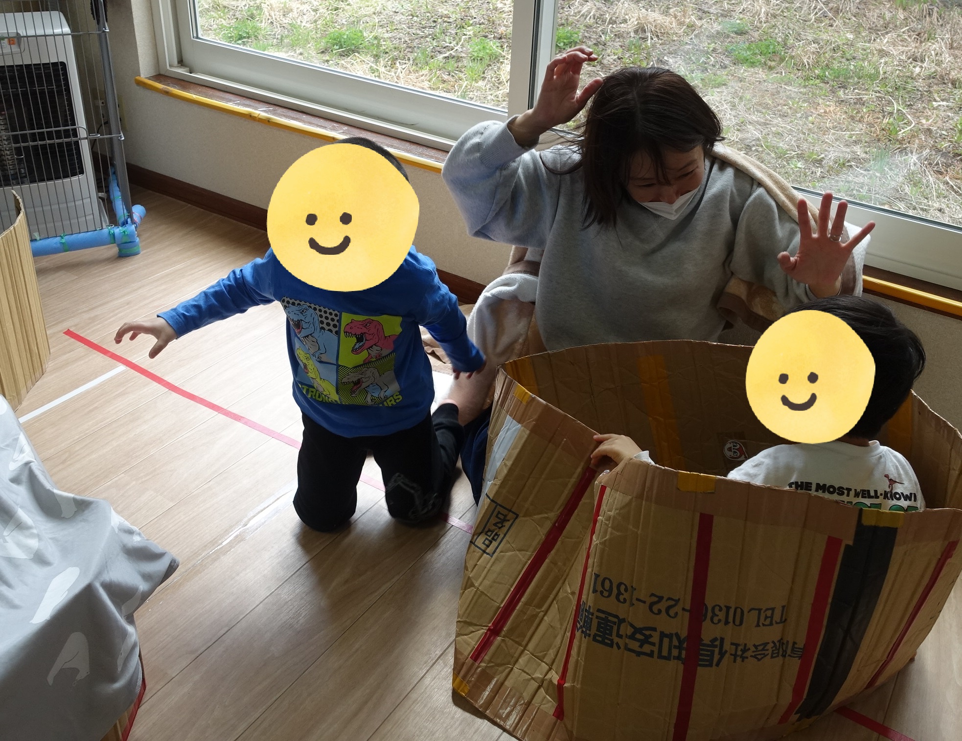 見つからないように静かにしながら、じーっと待つことに挑戦しました。ドキドキしながら待っていて、見つけてもらった時に「ばー!」と出てくる子どもたちは、とびきりの笑顔を見せてくれました✨