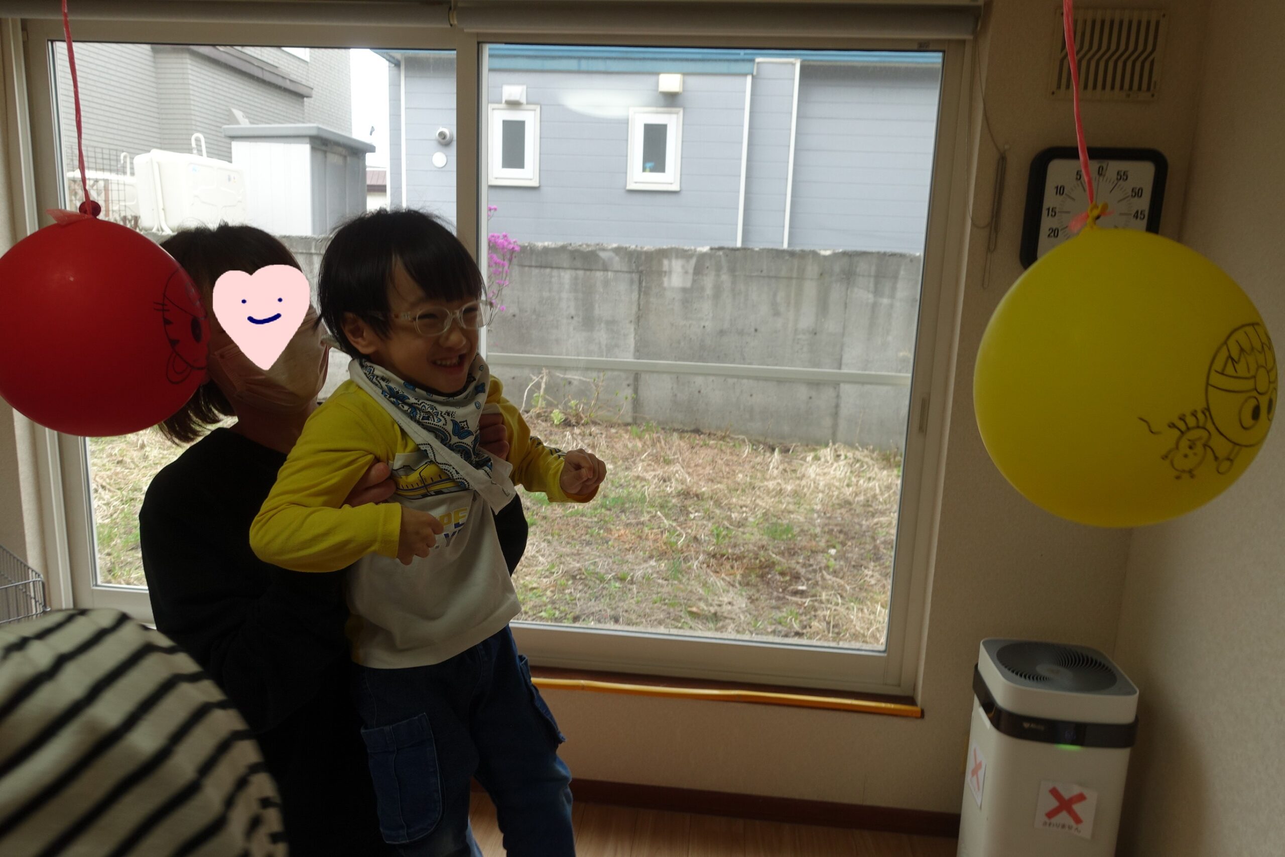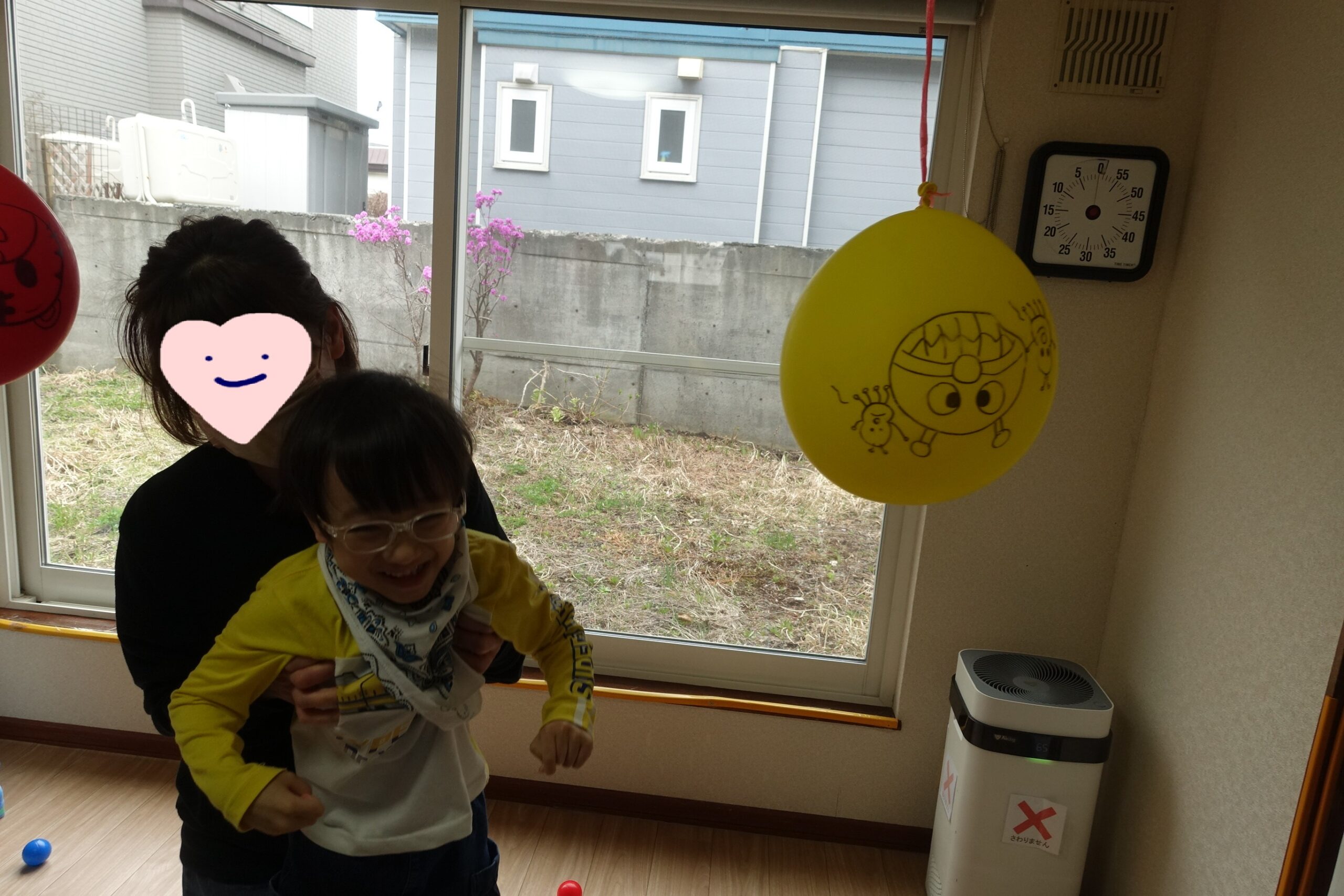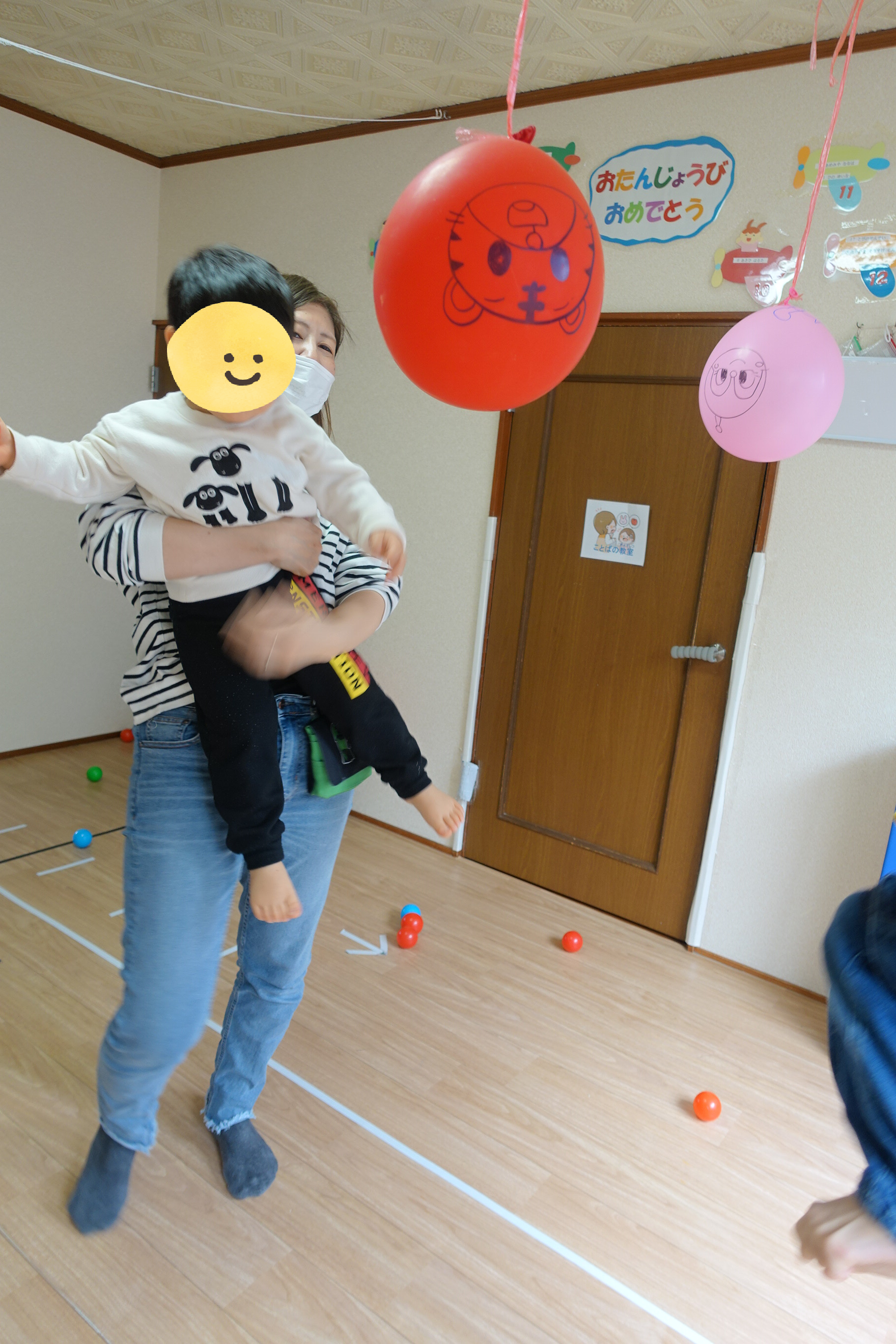 揺れる風船をよく見て狙いながら、元気いっぱい体を動かしていました!